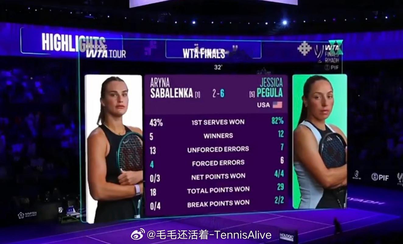 佩古拉打的太好了!!!6-2萨巴伦卡扳回一盘。