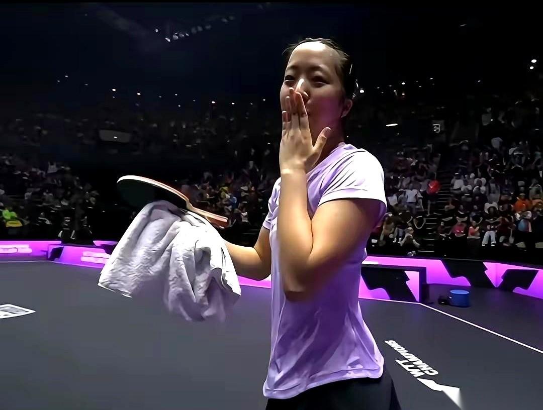 全场都在喊对手的名字,那种感觉,你知道吗? 就好像整个世界都在跟你作对,就你一个人,孤零零地站在战场中央。 耳朵里嗡嗡的全是给对面的加油声,山呼海啸一样。 说真的,这种球,赢下来靠的都不全是技术了,得有多大一颗心脏啊。 换我,估计腿都软了。 然后,最戳我的一幕来了。 大迪赢了,4:3,赢了这口气。就在她抬眼看向观众席的那一刻,我敢打赌,她也看到了。 前排,就那么一小点。 一抹扎眼的红色。 是个小不点儿,穿着跟她身上一模一样的国乒队服。 那孩子可能喊不出多大声,在那一片人声鼎沸里,他的加油微不足道。 但那一刻,那一抹红,就是全世界。 突然就明白了。 什么叫主场? 主场不是一个地方,不是有多少人为你的胜利鼓掌。 主场是,哪怕全世界都为你对手欢呼,依然有一个稚嫩的眼神,在坚定地告诉你: 我在,我挺你。 这抹红,比什么冠军都亮眼。