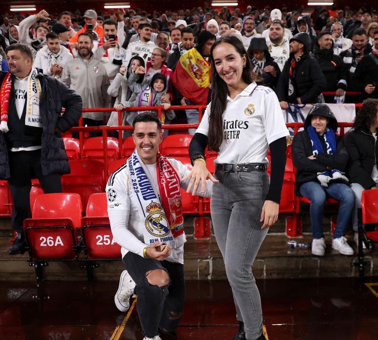 一个皇马球迷在安菲尔德求婚成功[心][心] 但球队输了[打call]