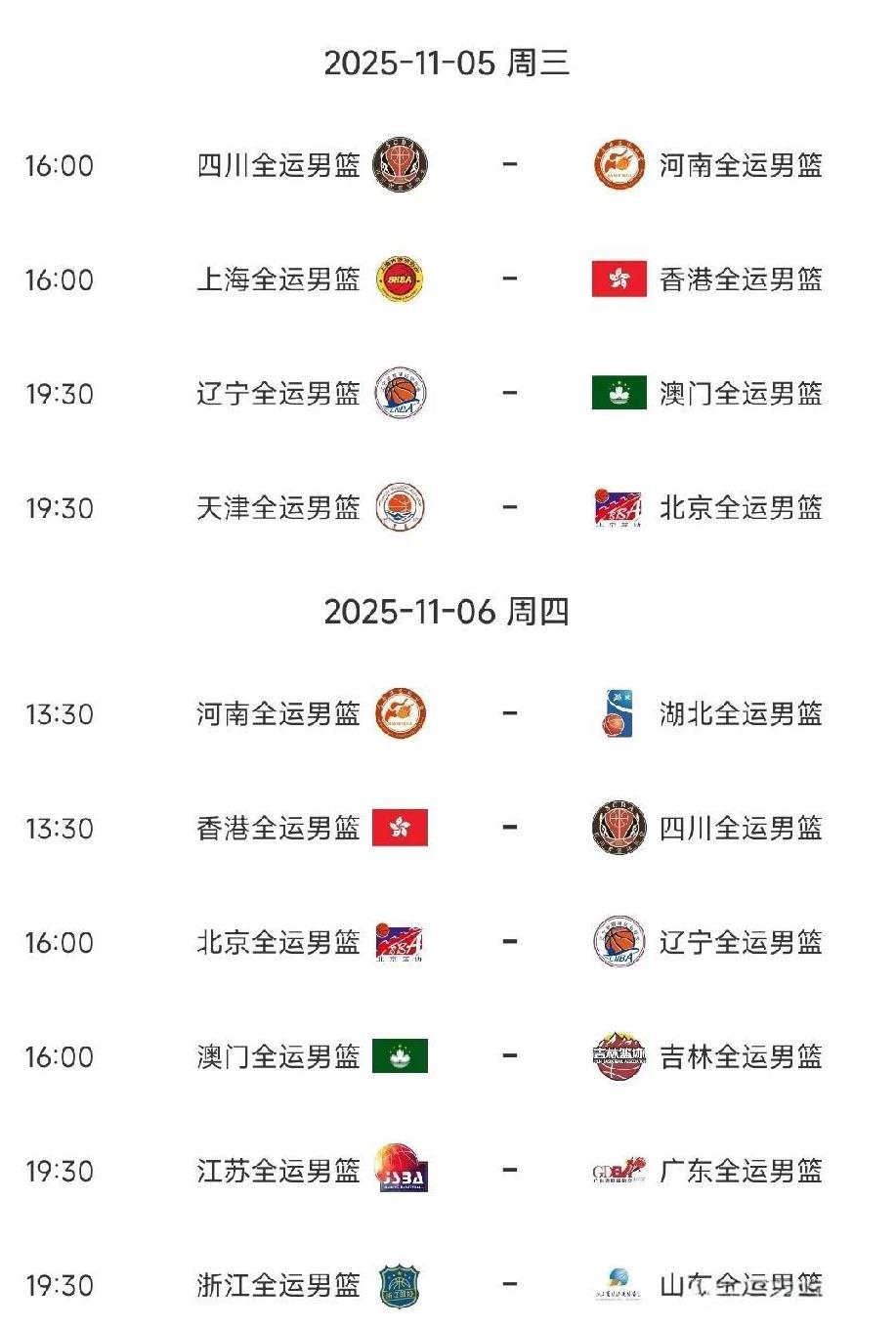 谁排的赛程?全运会男篮赛程对这几个球队极不公平! 全运会男篮目前已经打的如火如荼,当我看了下具体赛程安排后,感到极为不公平,这是谁排的赛程? 北京、辽宁、四川等球队的赛程就特别不公平,像辽宁和四川就要连续打四天4、5、6、7号,北京是5678号。 而像广东、浙江、山东男篮这组的赛程是4号、6号、8号,打一天歇一天!这赛程可太美了,我觉得这样的赛程安排很不公平