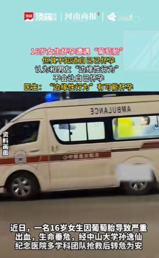 “悲剧还是发生了!”广东广州,一16岁女孩发现自己停经两个月了。一天下午,女孩突然被送进医院,家属说她阴道反复大量流血10多天,医生一检查发现她是“葡萄胎”急忙给女孩送进手术室,还好抢救及时,女孩才没有生命危险。事后,医生问女孩怀孕是怎么来的?女孩支支吾吾说出了实情。 前阵子听人说起广州医院的一件事,主角是个16岁的高中女生,她的经历让人既揪心又惋惜。 那天下午,她被家人用轮椅推进急诊室时,脸色苍白得没有一丝血色,连抬手抓住妈妈衣角的力气都没有。 陪同的妈妈一边抹眼泪,一边着急地跟医生说明情况:孩子已经阴道异常出血十多天了,一开始家里人问起。 她总说“没事,可能是月经不调”,直到前一晚出血量突然变大,人都快晕过去了,才终于哭着说出实情。 医生不敢耽误,立刻安排了B超、抽血等检查,结果出来后确诊是“葡萄胎”。 当天就紧急安排了清宫手术,手术室的灯亮了快两个小时,好在手术很顺利,女孩总算从鬼门关被拉了回来。 等她术后清醒些,在医生的耐心询问下,才慢慢说出了事情的起因:上个月周末和同学出去玩,一时糊涂有了不当接触。 之后发现月经没来,心里又慌又怕,既不敢跟爸妈说,也不知道该怎么办,只能一直拖着,没想到最后会发展成这么严重的情况。 其实,这个女孩的危机本可以避免。 如果她在月经推迟一周时,就敢告诉家长。 如果她知道阴道异常出血可能是身体发出的“危险信号”。 如果她了解不当接触可能带来的健康风险,或许就不会拖到大出血才就医。 可现实是,她对这些基础的生理健康知识一无所知,遇到问题的第一反应是“隐瞒”,而不是“求助”。 事后,女孩的妈妈跟医生叹气说,平时总觉得孩子年纪还小,关于身体发育、健康防护的话题,总不好意思主动跟孩子聊,总想着“等她长大了自然就懂了”。 正是这种“回避”,让孩子在遇到困惑时,找不到可以信任的人咨询,只能自己瞎琢磨,最后把小问题拖成了大危机。 不光是家庭,学校在这方面也有责任。 女孩后来跟护士说,学校的生理健康课,一讲到“自我保护”“健康风险”这些关键内容。 要么一笔带过,要么说“你们现在还小,不用懂这些”,根本没教过她们“月经推迟该怎么办”“不当接触有什么危害”。 其实葡萄胎并不是什么“罕见病”,在青少年群体中也有一定发生率,只要早发现、早治疗,恢复效果通常很好。 像这个女孩,如果在停经初期就就医,不仅能避免大出血的风险,手术对身体的伤害也会小很多。 可她因为缺乏知识、不敢沟通,硬生生错过了最佳干预时机。 还有一点很关键,这个女孩对“自我保护”没有任何概念。 她不知道,面对不当接触时可以拒绝;不知道如果发生意外,该通过正规途径了解防护知识;更不知道紧急情况下,及时告知家长、就医检查才是最正确的选择。 这些本应该是家庭和学校早早教给她的常识,却成了她的“知识盲区”。 说到底,这个广州16岁女孩的葡萄胎悲剧,本质上是性教育缺失导致的。 如果家长能主动打破“不好意思”的顾虑,早点跟孩子聊聊身体的变化,告诉她“遇到不舒服一定要说”。 青春期的孩子,对身体变化本就充满困惑,最需要有人手把手引导。 比起回避相关话题,让孩子掌握科学的健康知识、学会保护自己,才是对她成长最实际的负责。 真的希望所有家长都能醒醒,别再觉得性教育羞耻了!跟孩子讲清楚身体变化、教她保护自己,比啥都重要,别等出事了才后悔。 这事儿也给所有青春期孩子提个醒,身体不舒服一定要第一时间告诉爸妈,别自己扛,健康和安全永远是第一位的! 那么你们怎么看呢? 如果各位看官老爷们已经选择阅读了此文,麻烦您点一下关注,既方便您进行讨论和分享,又能给带来不一样的参与感,感谢各位看官老爷们的支持!