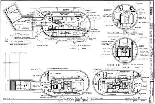 较大的舱体是发射控制中心,导弹操作员在此执行战备值班,监控(并潜在发射,虽从未实施)其负责的10枚"民兵"导弹。这些发射井分布在不同方位,最近3英里,最远18英里。