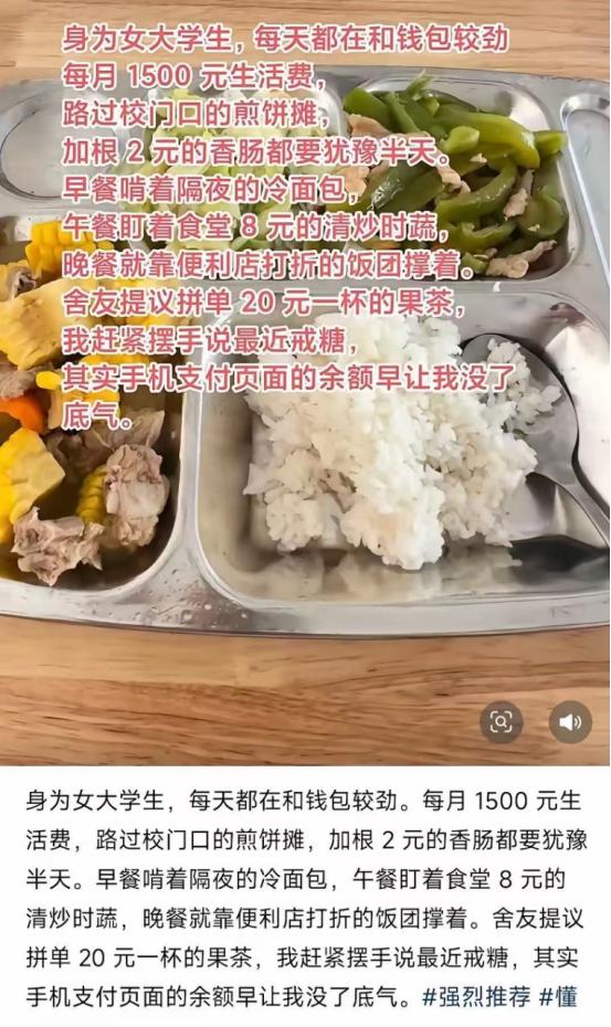 大学女生哭诉,父母一个月只给1500的生活费,根本不够。而她晒出的生活费清单,让