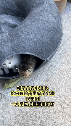 万物皆有灵!吉林一女子在车库中发现了一只流浪猫,因为天气很冷,女子就给流浪猫买了一个猫窝,没想到第二天猫窝就被一群小猫给霸占了,而流浪猫则守在猫窝旁抱着小猫的安全,原来,猫窝中的小猫是流浪猫的孩子。网友:有妈妈在的地方就是家。 10月底的吉林,寒风卷着碎雪打在车库铁皮门上,发出呜呜的声响。 长春某小区地下车库的拐角处,李女士拎着购物袋经过时,瞥见一团灰扑扑的影子缩在暖气管道旁。 那是只瘦得能看见肋骨的流浪猫,正把尾巴缠在爪子上,浑身冻得直打颤。 李女士家里已经养了两只猫,知道流浪动物的难处,她当即从包里掏出自家猫吃的冻干,倒在干净的纸壳上。 猫先是往后缩了缩,等她退到三米外,才小心翼翼地凑过来,吃几口就抬头望一眼,那眼神里全是警惕,却又藏着一丝依赖。 之后的一周,李女士每天都会绕到车库投喂,猫渐渐敢在她站着不动时进食,只是始终保持着半米的安全距离。 降温的那天,李女士看着猫在寒风中缩成一团,心里不是滋味。 晚上回家就打开购物软件,挑了个加绒防水的猫窝,车库里潮,防水材质能护住小猫,又特意选了浅灰色,想着在昏暗的环境里不那么显眼,能让猫更安心。 她还翻出家里的旧毛巾,洗干净铺在窝里,趁着夜色放在车库最避风的角落,当时就想让它冬天能好过点,压根没多想别的。 第二天一早,李女士特意绕去车库看情况,远远就看见猫窝旁蹲坐着那只灰猫。 走近了才发现,猫窝被“霸占”了:四只巴掌大的小猫挤在里面,毛色混杂着灰和白,粉嫩嫩的爪子露在外面,发出细细的哼唧声。 而猫妈妈正前爪搭在猫窝边缘,脑袋每隔几秒就探进去嗅一下,听见脚步声立刻弓起背,喉咙里发出低沉的呼噜声,却始终不肯钻进温暖的窝。 那一刻突然就懂了,它是怕挤着孩子,自己宁愿在外面守着。 李女士的声音里满是动容,她悄悄退开,没敢打扰这温情的一幕。 中午,李女士带着更多的猫粮和温水过来,还特意带了幼猫能吃的奶糕罐头。 这次猫妈妈没有躲开,只是看着她把食物放在旁边,等她退远后,才先低头舔了舔窝边的温水,又叼了一小块罐头放进猫窝。 李女士看着这一幕,当即决定要帮它们,这么有灵性的猫,不能让它们一直在车库里挨冻。 她联系了小区附近的宠物医院,预约了体检和疫苗,又在本地宠物领养群里发了求助信息,附上拍的照片和视频。 现在李女士的手机里,存着不少猫妈妈和小猫的照片。 镜头里,猫妈妈已经敢在她喂粮时蹭蹭她的裤腿,小猫们也睁开了眼睛,能踉踉跄跄地爬出猫窝,在她脚边绕圈。 预约的体检很顺利,除了有点营养不良,几只猫都很健康。 领养群里的消息也不断,已有两位居民敲定了领养意向,下周就要来接小猫回家。 万物皆有灵,每份真心都不会被辜负,每个生命都值得被温柔以待。 这寒冬里的小小猫窝,不仅暖了四只小猫的身体,更暖了人心,也照见了跨越物种的信任与爱。