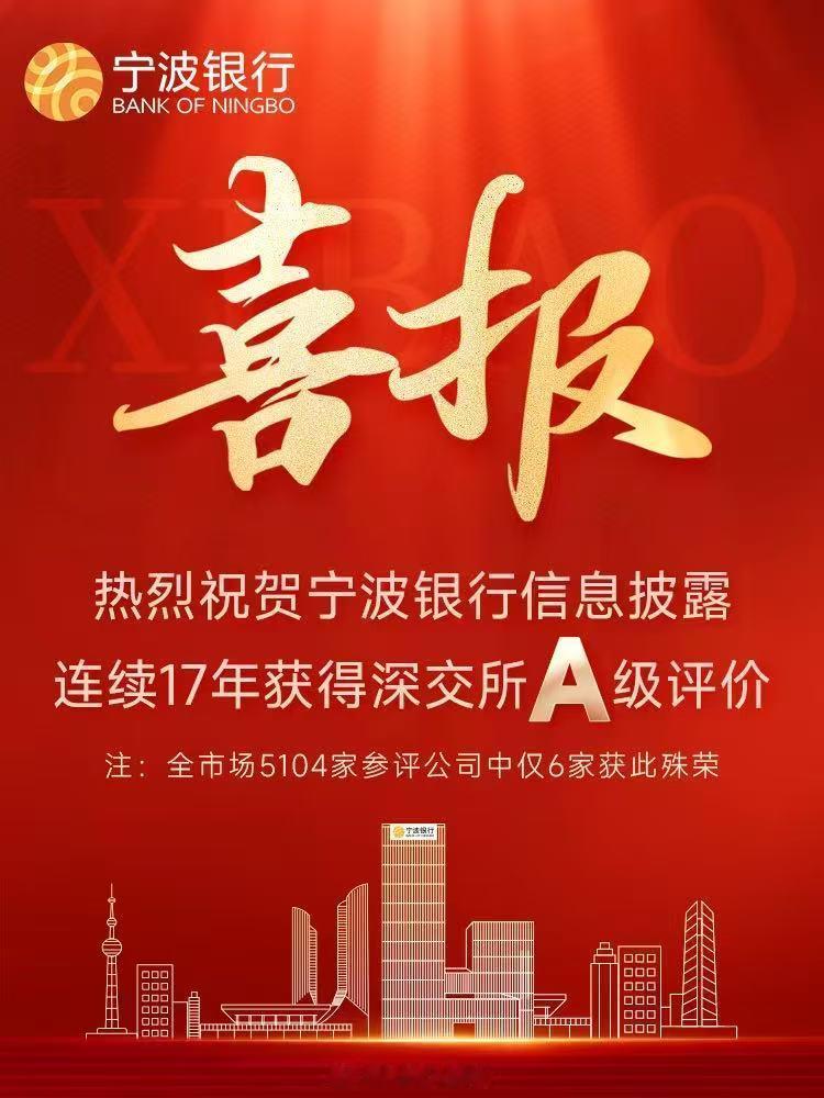 信息透明是最好承诺。宁波银行2024年信披获A级,ESG评级领先,全年与超千位投资者深度沟通,坚守对股东的市场责任[赞]