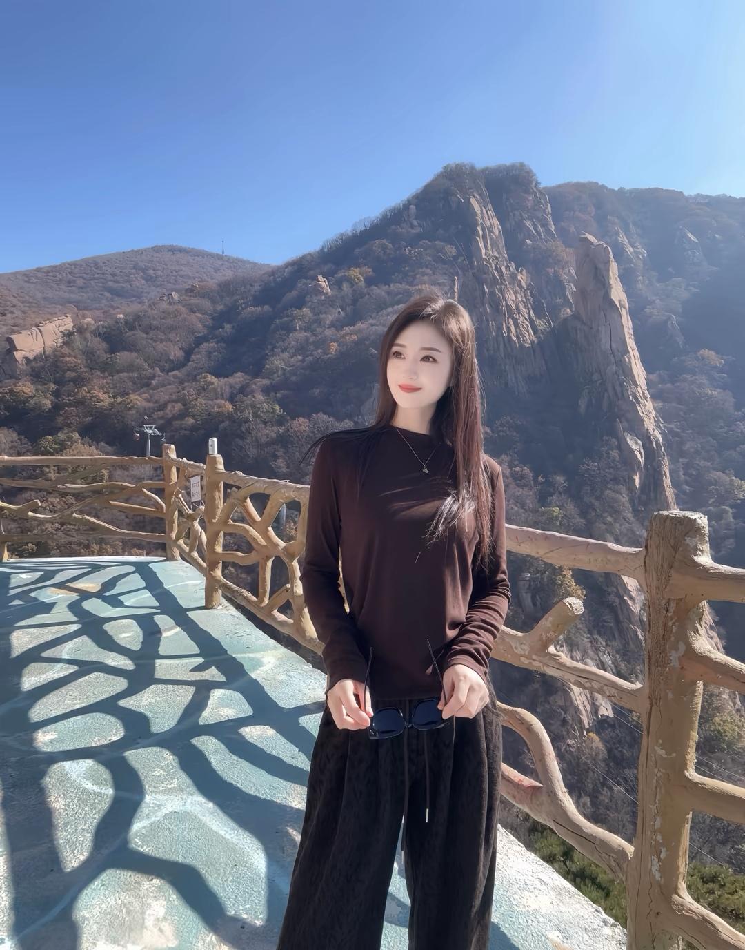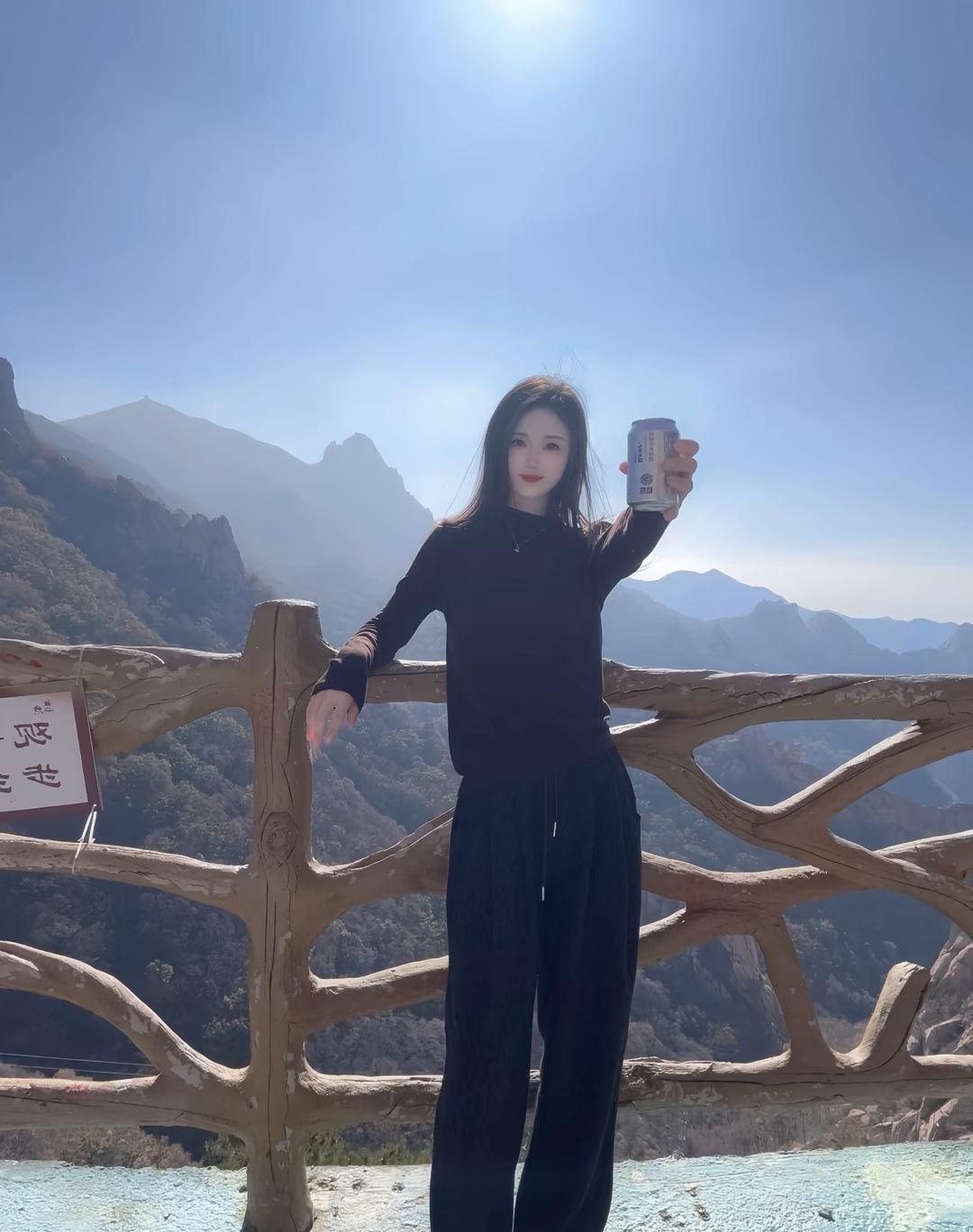 雪地里的酷炫女孩,黑色皮夹克搭配雪景,时尚又帅气!
