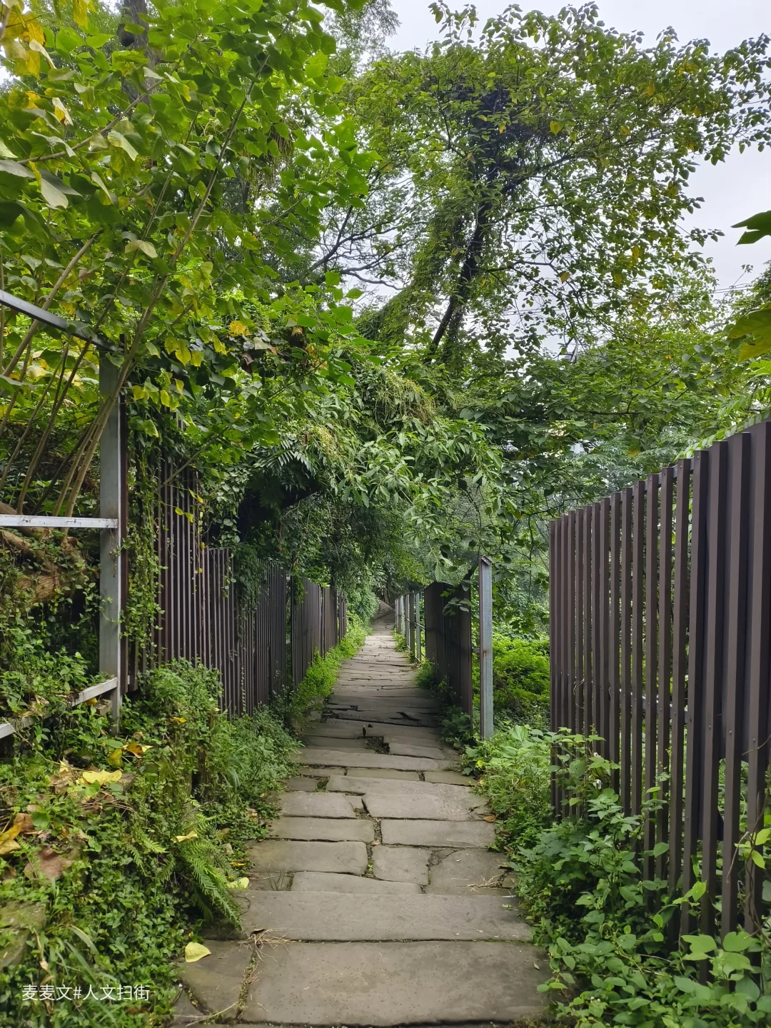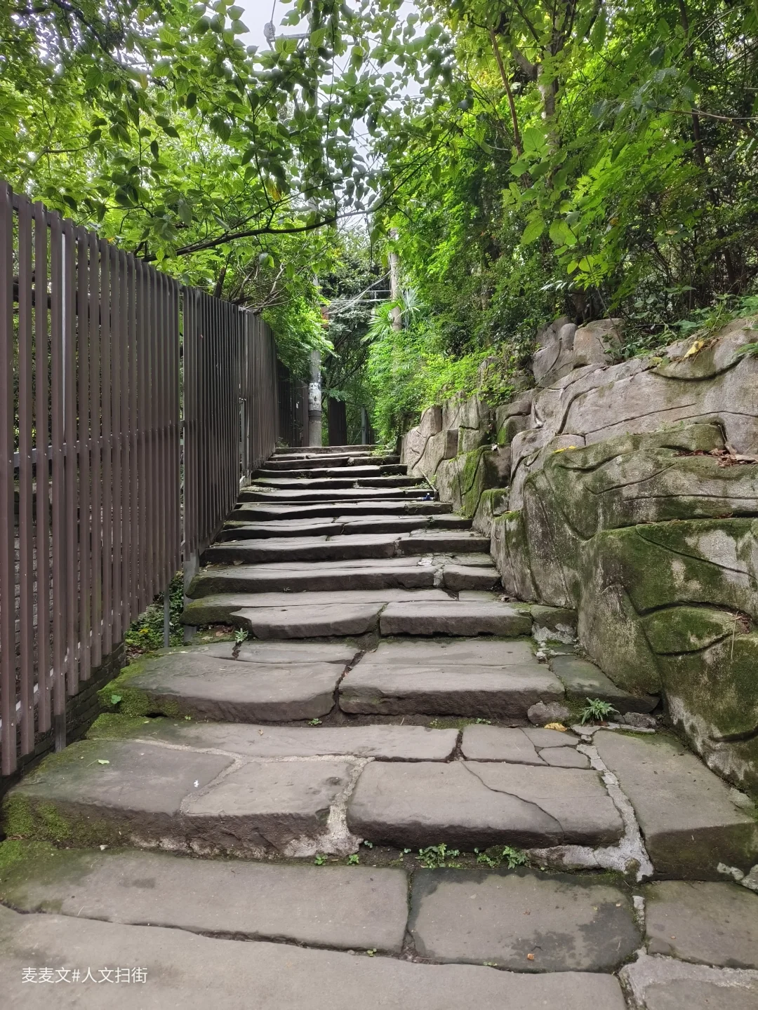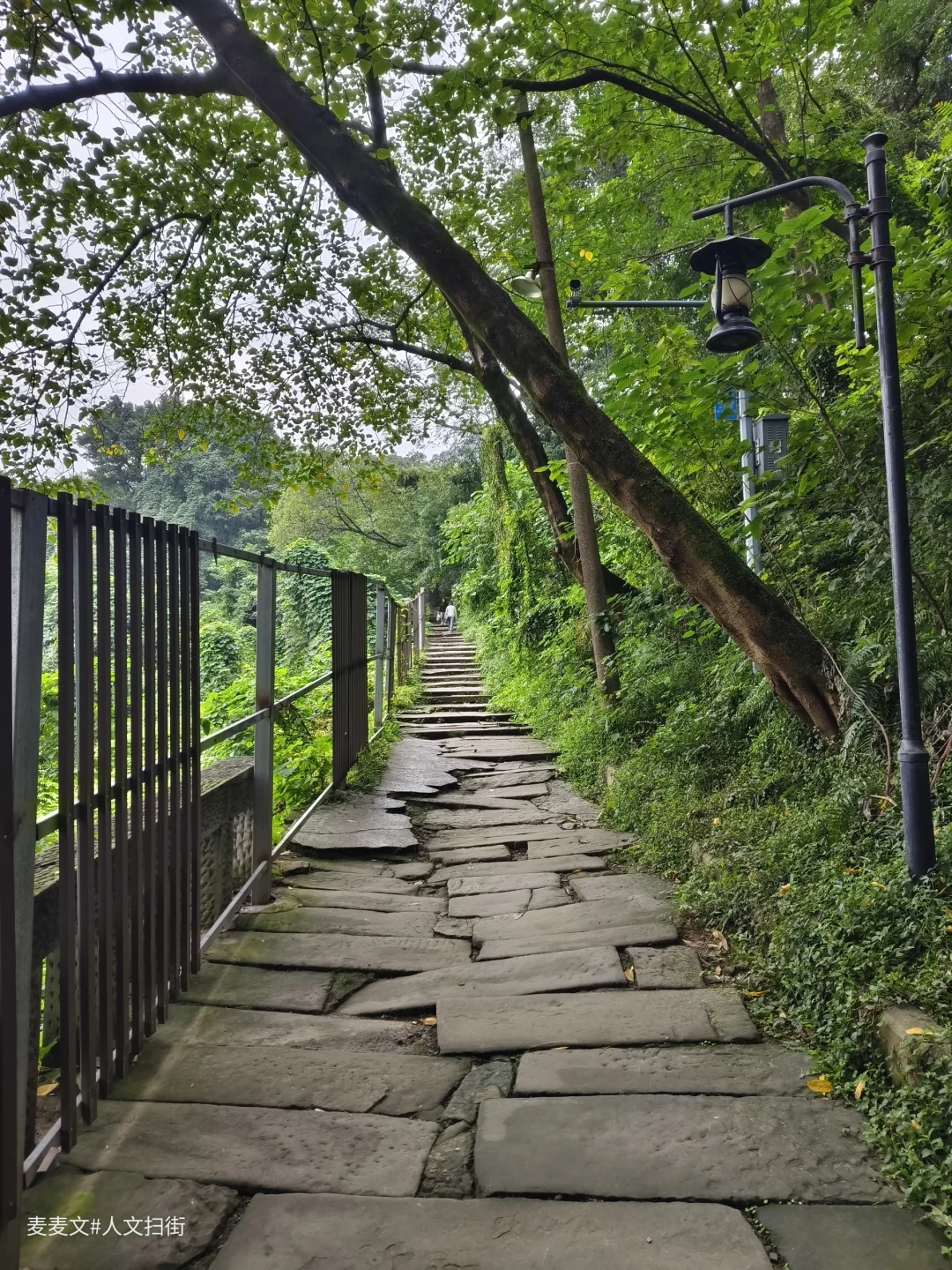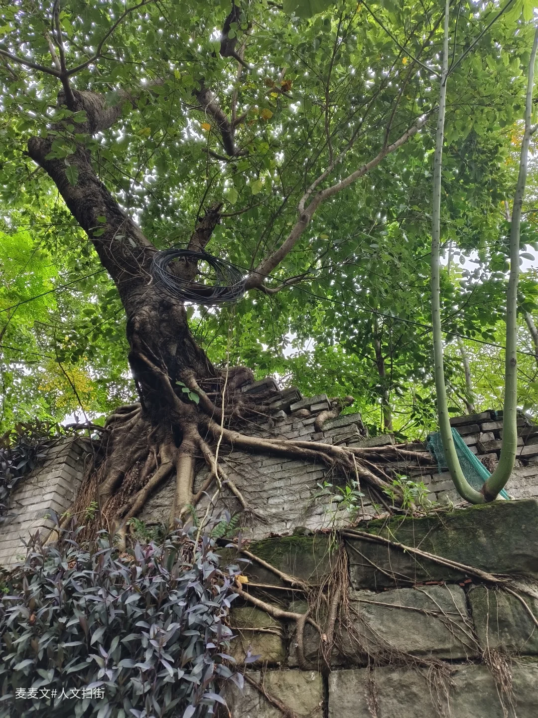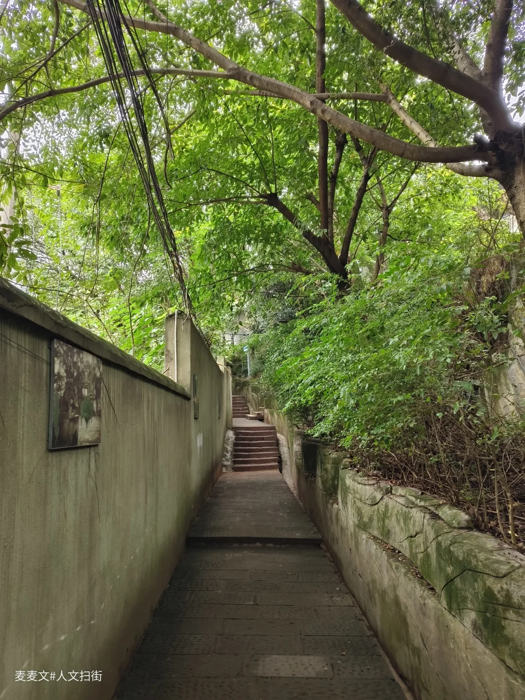 黄葛古道的另一条路起于重庆市南岸区海棠溪街道二院入口,紧邻老君洞的一条石磴盘曲的天梯云栈,两条路在黄桷垭口前汇合。据考证,该路始于唐宋,自此人群熙攘,热闹非凡。 黄桷古道的精彩段落,也是历代名人常经之地,曾留下丰富的题刻和诗词。抗战期间,入缅作战的部分军队也经此古道而过,足见其当年重要的交通作用。 在黄龙公路通车之前,也是重庆市区与黄桷垭的重要联系道路。漫步在青石板路上,青石板山径两侧一路数百年古老的黄桷树,虬枝粗干。树荫下青石径被往来人磨得水亮。