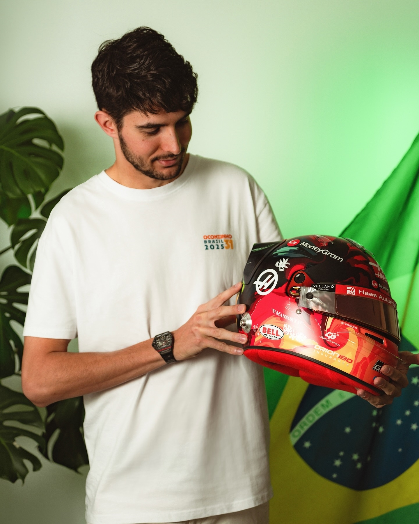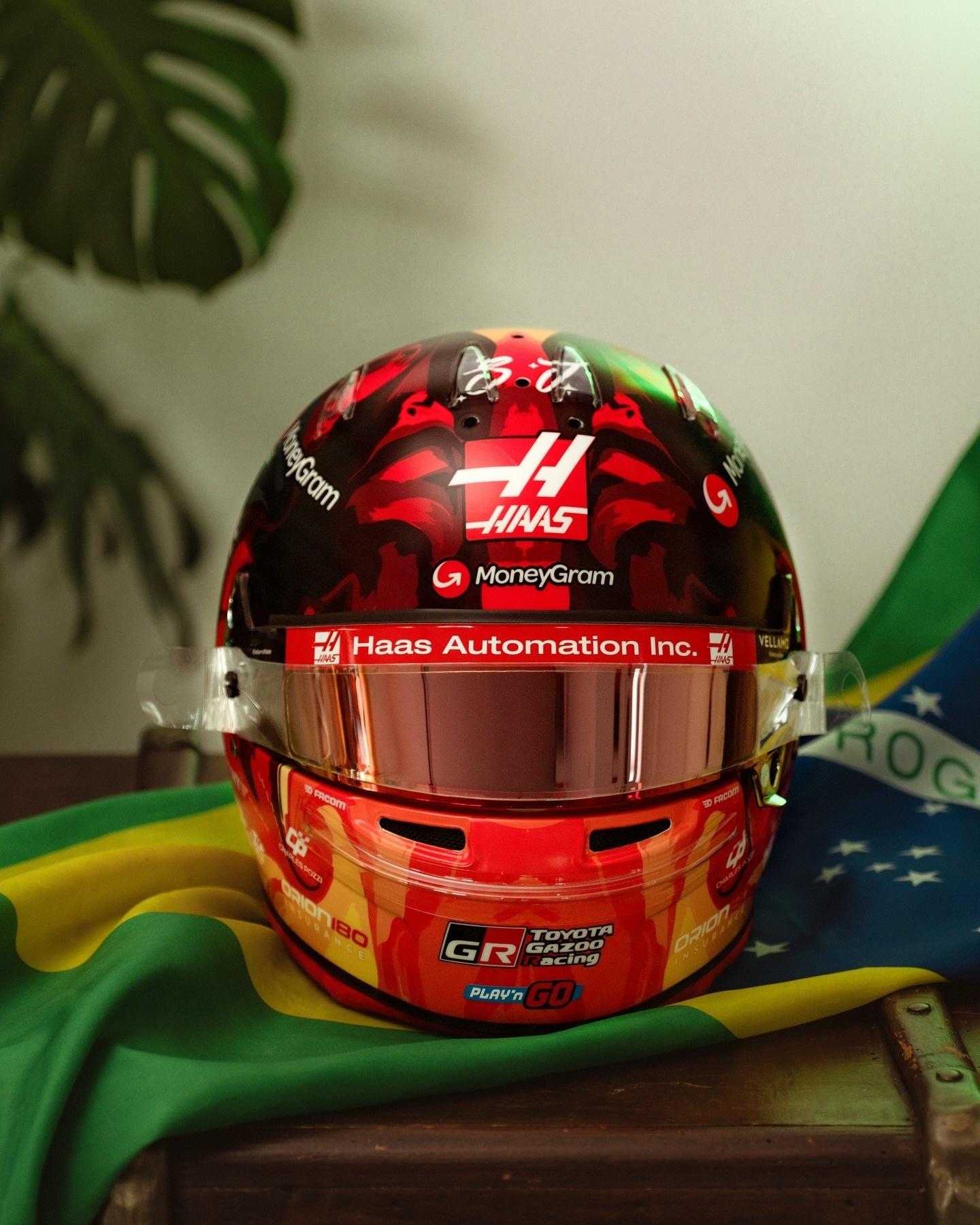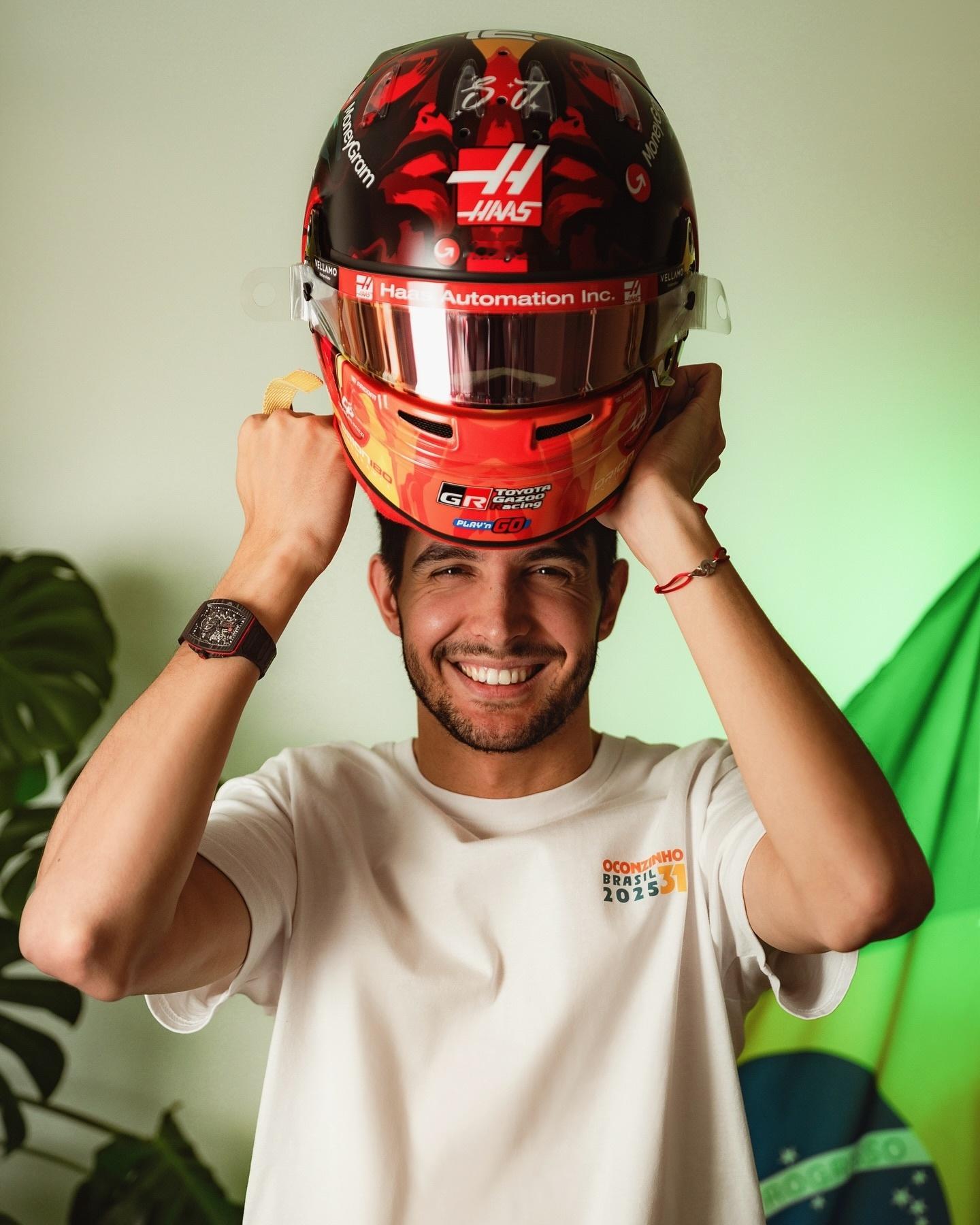 哈斯车队车手奥康在本周F1圣保罗🇧🇷大奖赛带来特别版赛车头盔👀