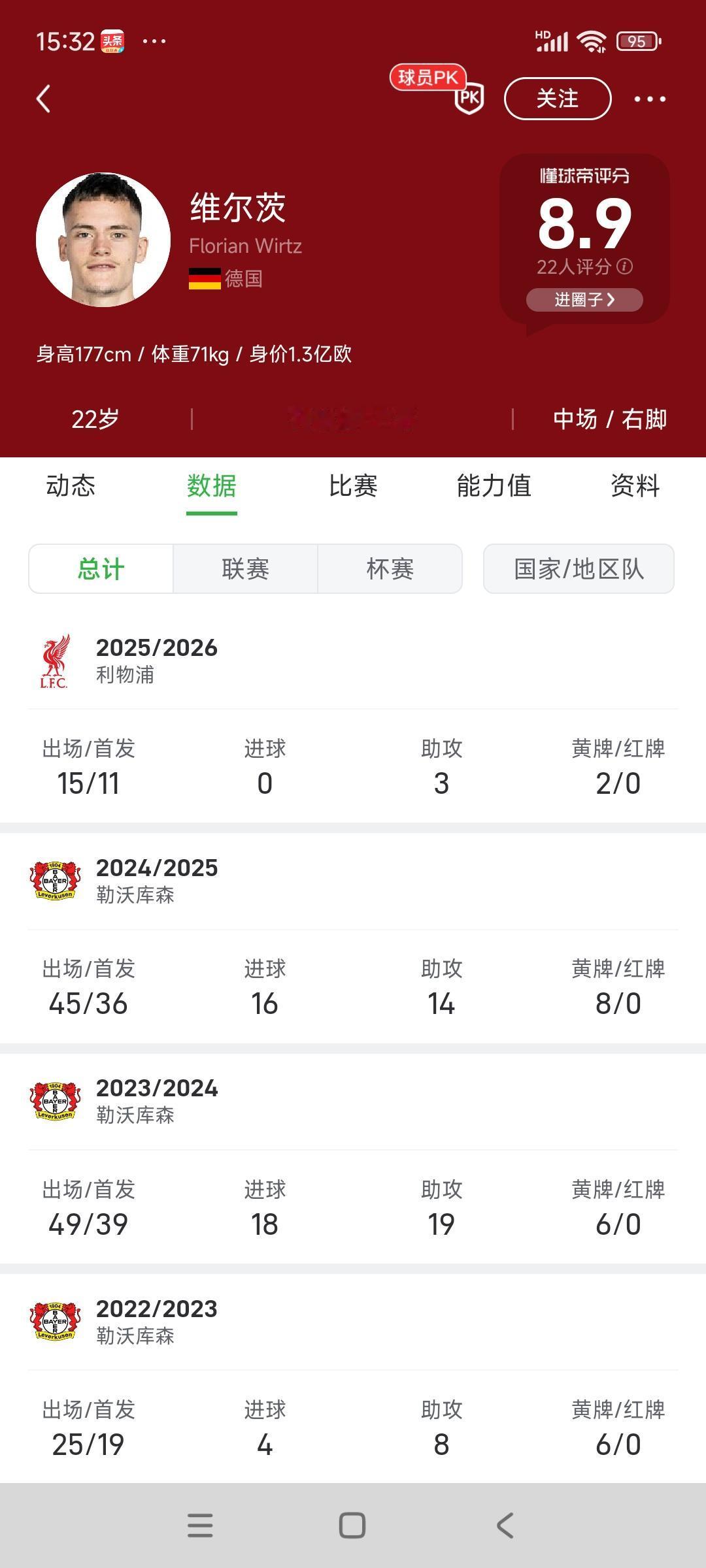 维尔茨到底是水货还是天才,真让人看不懂。 他在英超和欧冠0进球。 但是本赛季英超创造进球机会,他在英超球员前几名。 在4场欧冠创造机会最多,还是利物浦队史最多。 创造这么多机会,偏偏数据很难看,维尔茨好像很冤枉呀!![捂脸][尬笑]