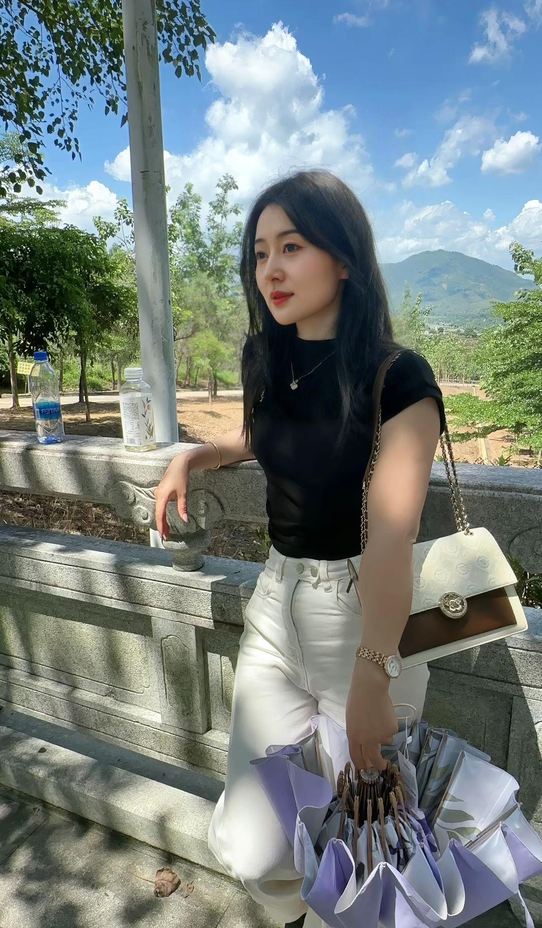 优雅黑裙女孩与浪漫花束的完美邂逅🌸💕
