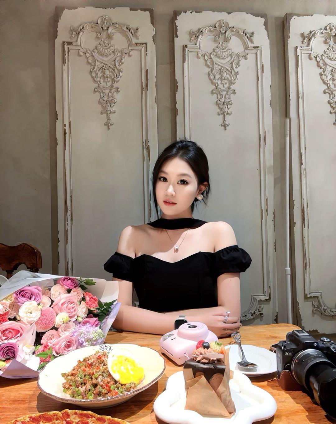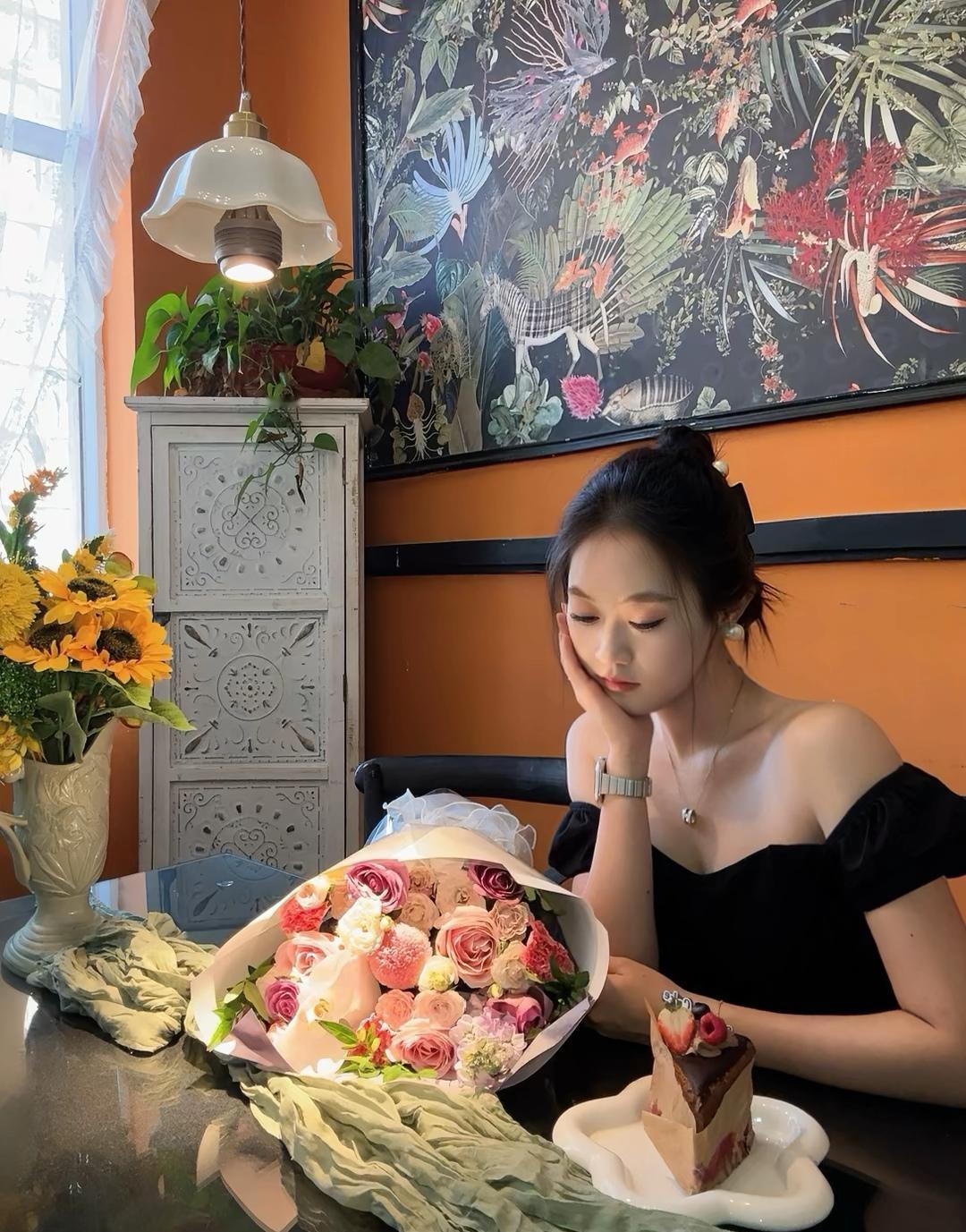 优雅黑裙女孩与浪漫花束的完美邂逅🌸💕