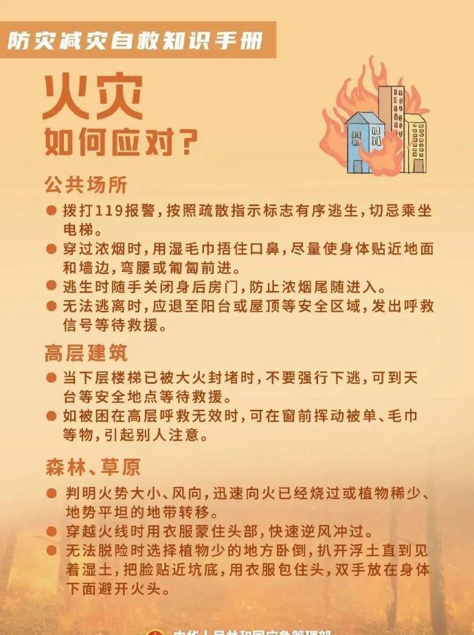 【防灾减灾自救知识手册】自然灾害突发性强、破坏力大,给市民群众生命财产安全带来威胁。遇到灾害如何避险自救?以下九类常见自然灾害应对知识要牢记!@应急管理部