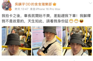 吴镇宇很受伤 不是他儿子蜚曼又惹祸了 也不是他演技不好被骂了 而是64岁的他终于办了老年卡,坐公交车被司机质疑了,说要看他的证,我怀疑他在凡尔赛。 直到网友问他,为什么不给你让座,他的好心情瞬间被熄灭,扎心了。