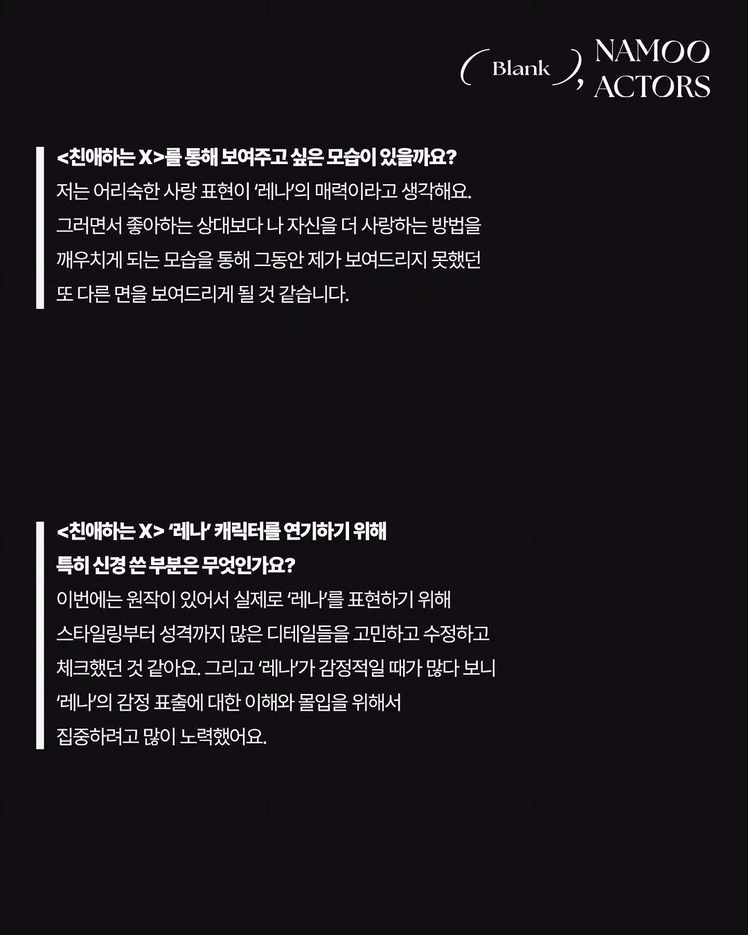 《亲爱的x》蕾娜的饰演者李烈音李烈音[超话]“成为值得信赖的演员,直到去世为止,