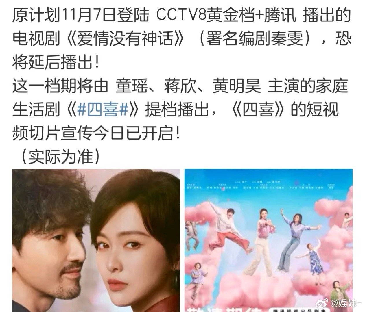爱情没有神话撤哪门子档?没看见官方定档消息,别听风就是雨了,反正我会支持唐嫣来看