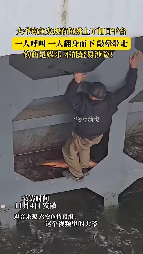 “简直赚翻了!”11月3日,在安徽六安,一位大爷正在水闸处钓鱼,突然,一条大鱼跃到了水闸平台上。大爷兴奋不已,赶忙喊来朋友一起捞鱼。只见他顺着闸口慢慢爬下去,将大鱼敲晕后抱了上来,那身手,十分敏捷!有网友不禁调侃:“为了鱼连命都不要了?” 这个故事着实让人又惊又佩!大爷钓鱼时意外撞见大鱼跳上平台,反应迅速,行动力十足,亲自下到水里把鱼敲晕抱上来,他的勇气和敏捷身手着实令人赞叹。网友那句“为了鱼连命都不要了”的调侃,也体现出大家对这种热爱钓鱼、敢于冒险精神的关注与好奇。 不过,还是要提醒大家,在遇到类似情况时一定要注意安全,要在确保自身安全的基础上享受钓鱼的乐趣。这样的故事虽让人振奋,但也值得我们深思,如何在热爱之事中兼顾安全与责任。