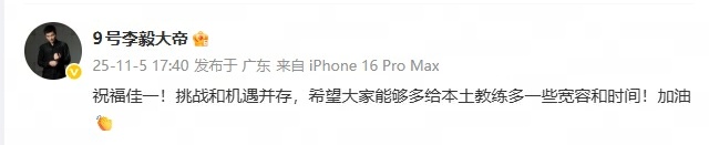 足协官宣邵佳一担任国足主教练,发文:祝福佳一!挑战和机遇并存,希望大家能够多给本土教练多一些宽容和时间!加油👏