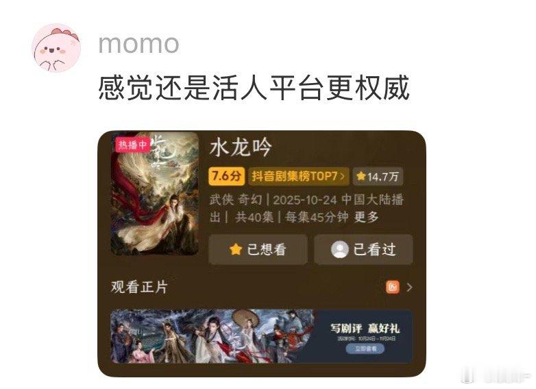 豆瓣水龙吟 5.7分,不会是水龙吟的耻辱,而是豆瓣之耻,偏见之耻……