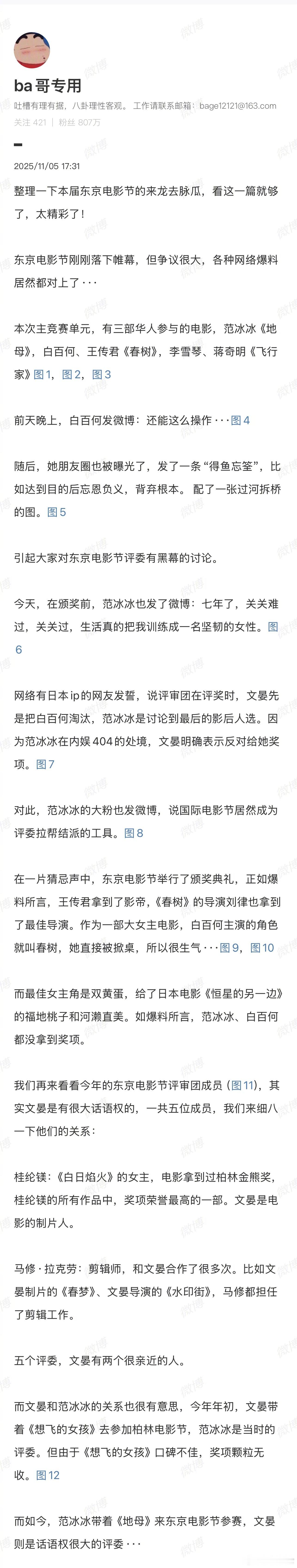 11月4日,白百何不满王传君获奖,发文暗指王传君背后获奖有猫腻,朋友圈发图暗指片