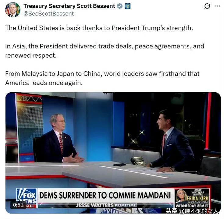 擦!到底输了还是赢了? 贝森特这一段——因为特朗普总统的实力,美国回来了……【图二】 他的意思是,之前,美国输了,现在赢了? 但是,看看,美国军人都不能按时发工资,白宫还在“停摆”,美国赢在哪里呢?特朗普啥实力啊?[捂脸]