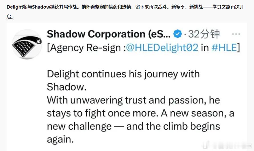 Shadow官宣Delight续约HLES7鸟巢巨龙飞到成都 曝爱笑与AL续约三年