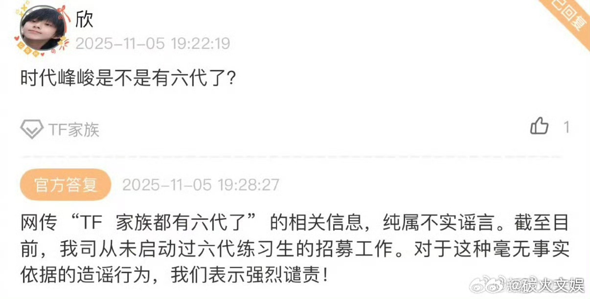 时代峰峻否认TF有六代时代峰峻辟谣TF有六代时代峰峻辟谣TF有六代,好,[憧憬]