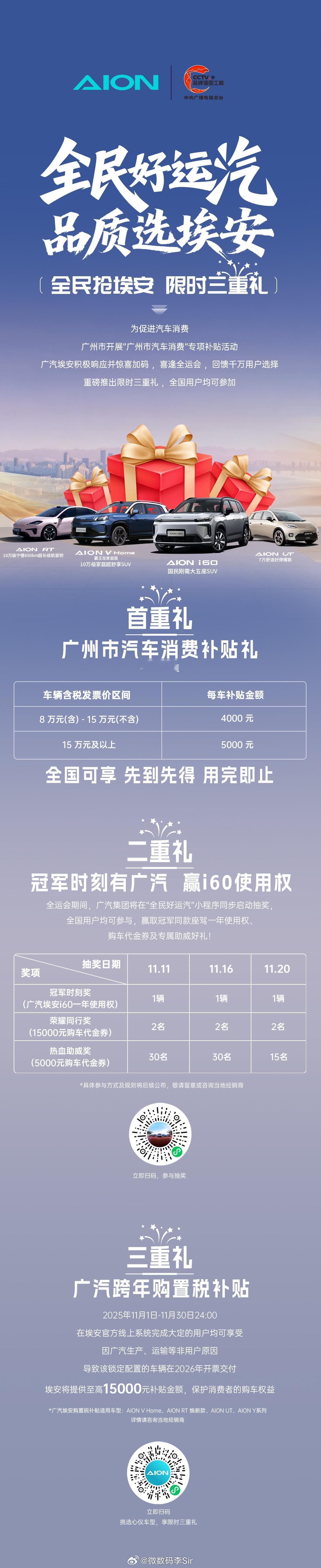 三重礼:广汽跨年购置税补贴,至高可享15000元补贴!冠军时刻有广汽