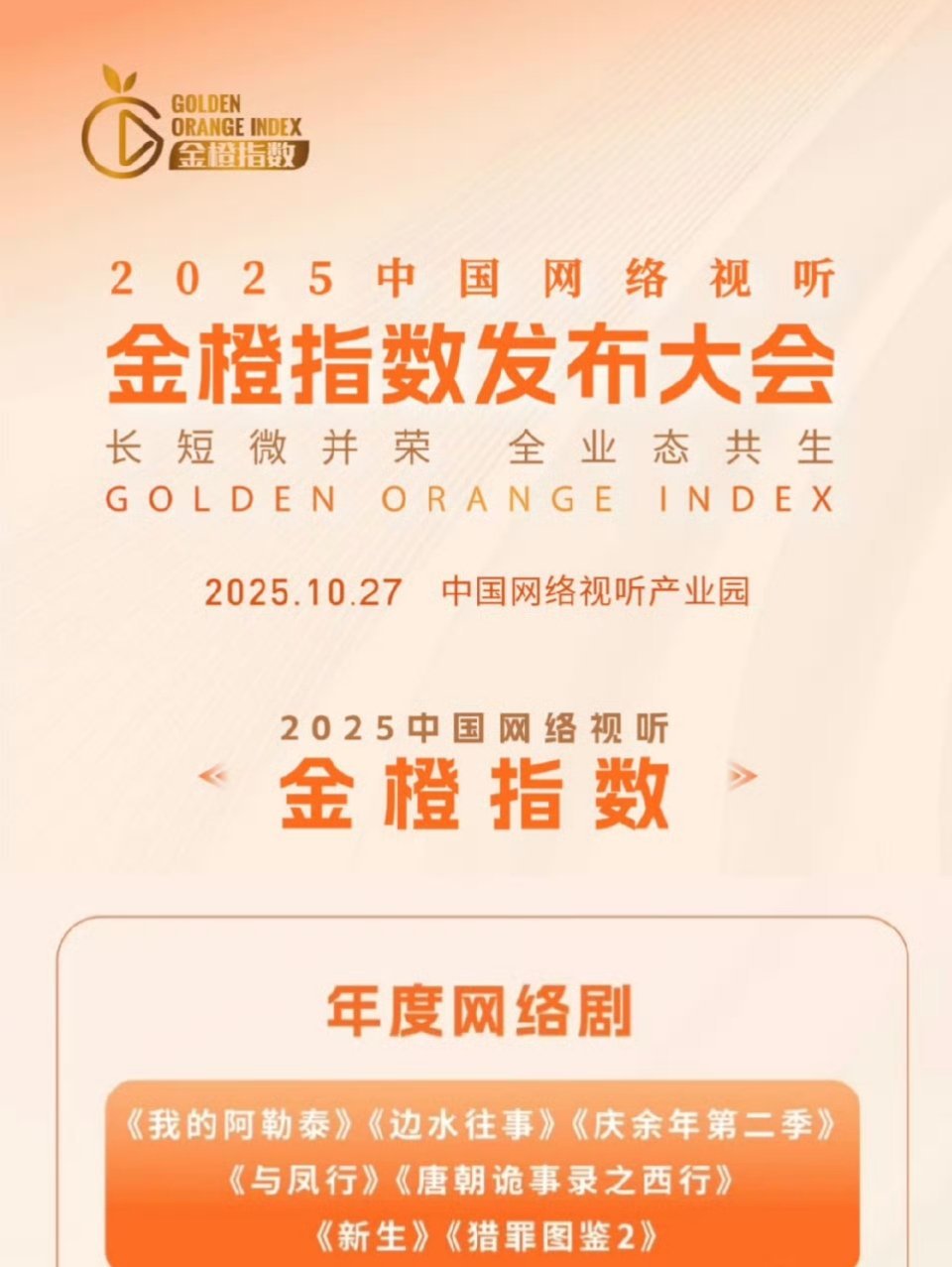 2025中国网络视听金橙指数正式发布赵丽颖《与凤行》获评〈年度网络剧〉
