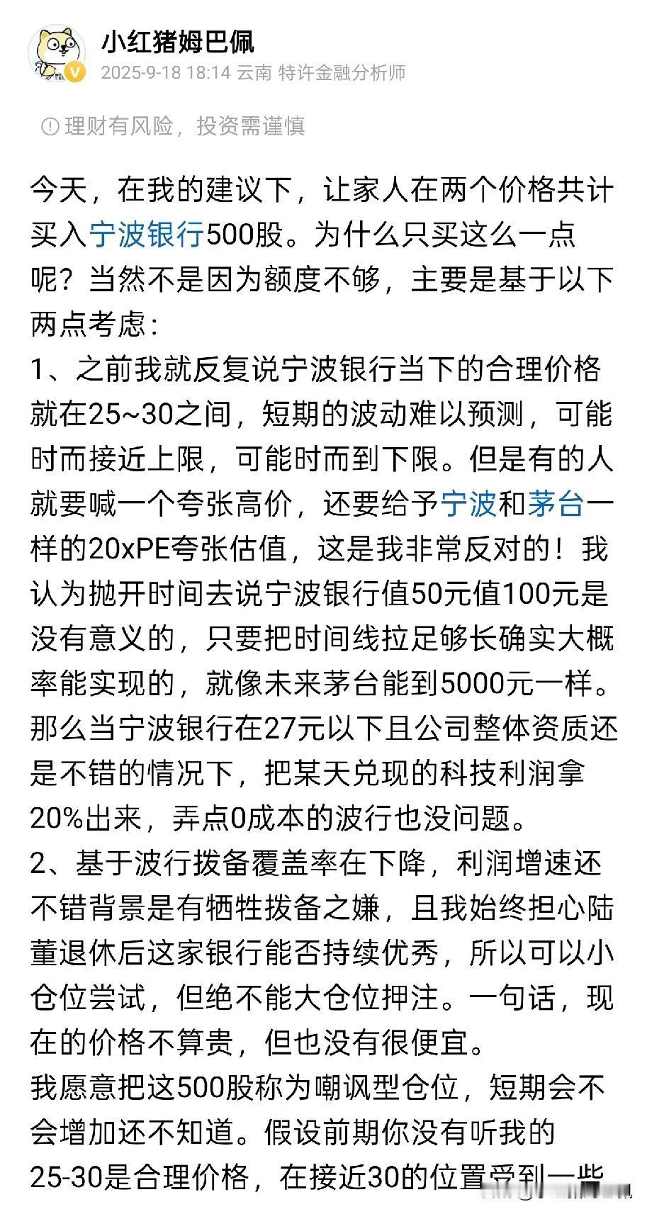 昨天把一个半月前,我所说的让家人建立的嘲讽型宁波银行仓位全部给清空了。当时下跌过