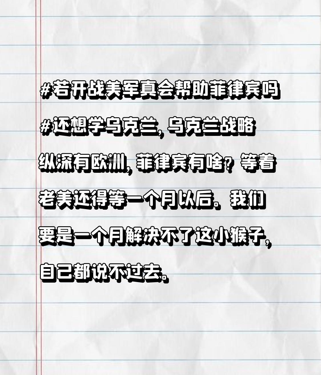 还想学乌克兰,乌克兰战略纵深有欧洲,菲律宾有啥?等着老美还得等一个月以后。我们要