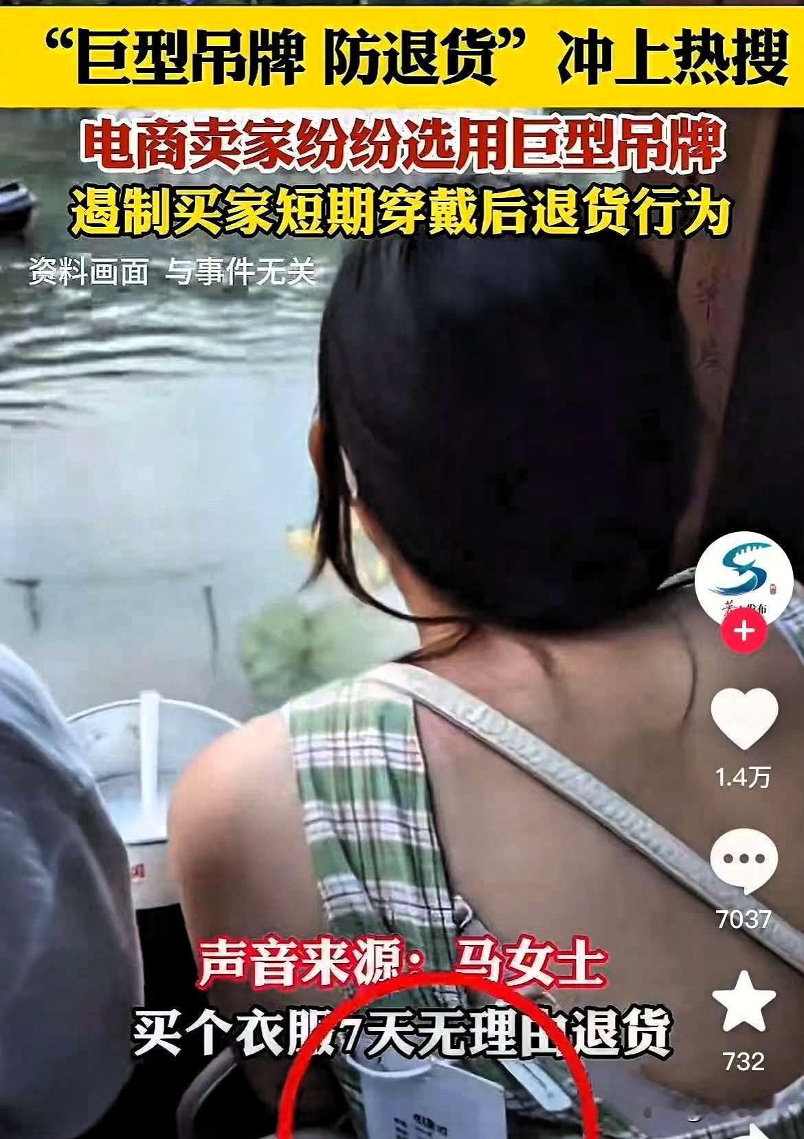有种强烈预感!吊牌的事情这样一搞!电商行业要变天了 最近刷到好多卖家都用上超大号吊牌,有的比巴掌还宽,有的直接缝在衣服最显眼的地方,目的特别直白——治那些“穿完就退”的套路。 本来七天无理由退货是给大家购物兜底,结果有人专钻这个空子:衣服买回来穿去约会、参加婚礼,甚至穿去旅游拍了一圈打卡照,转头就以“尺码不合适”“颜色不喜欢”退货,自己一分钱不花还赚了体面,可下一个买家拿到手的,说不定就是沾着香水味、领口有粉底印,甚至衣角磨出毛边的“二手新衣”! 我之前就踩过这大坑,正价买的一条连衣裙,拆开包装就觉得不对劲,裙摆有个淡淡的污渍,袖口还隐约有折痕,当时气得想直接找商家理论!可又怕对方扯皮说我自己弄的,最后只能自认倒霉,用去渍剂洗了好几遍才敢穿,心里膈应了好久。凭啥我们正经消费者花正品钱,要替别人的自私买单? 其实商家搞巨型吊牌,哪是刁难人啊,是实在被坑怕了!一件衣服被穿完退回,商家要么低价处理亏成本,要么花心思清洗消毒,最后还得担着被下一个买家投诉的风险。这种白嫖操作,既毁了商家的信任,又坏了整个购物环境的风气。 真希望那些耍小聪明的人能明白:把自己的方便建立在别人的糟心之上,一点都不光彩。“七天无理由”是保障,不是让你免费“租衣服”的漏洞。