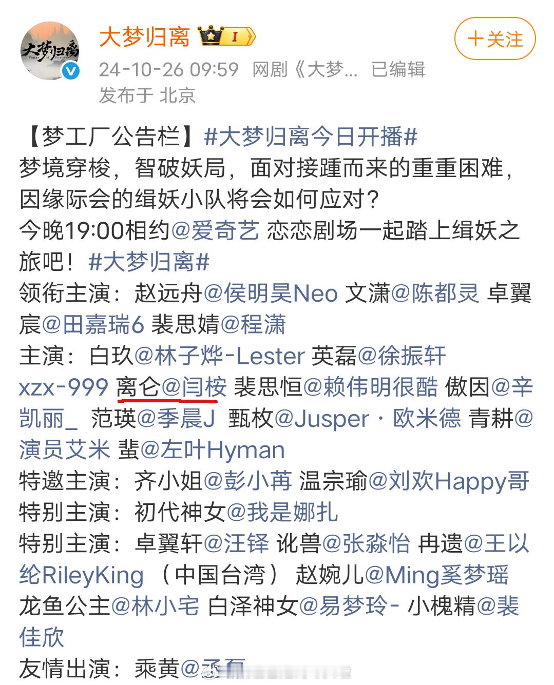 闫桉就播了一部大梦归离7番,待播剧烽影燃梅香是王楚然的男二,月鳞绮纪是鞠婧祎陈都灵的男三。