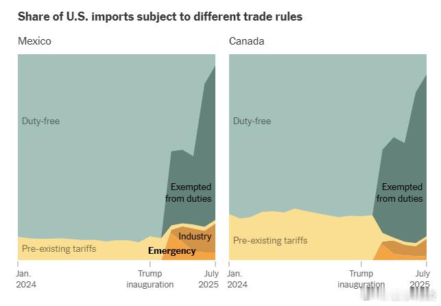 在特朗普第二个任期开始之前,几乎所有进口商品都是根据世界贸易组织内部达成的长期贸易规则进入美国的。然而,分析显示,到今年7月特朗普的许多关税开始生效时,这一趋势已被彻底逆转。