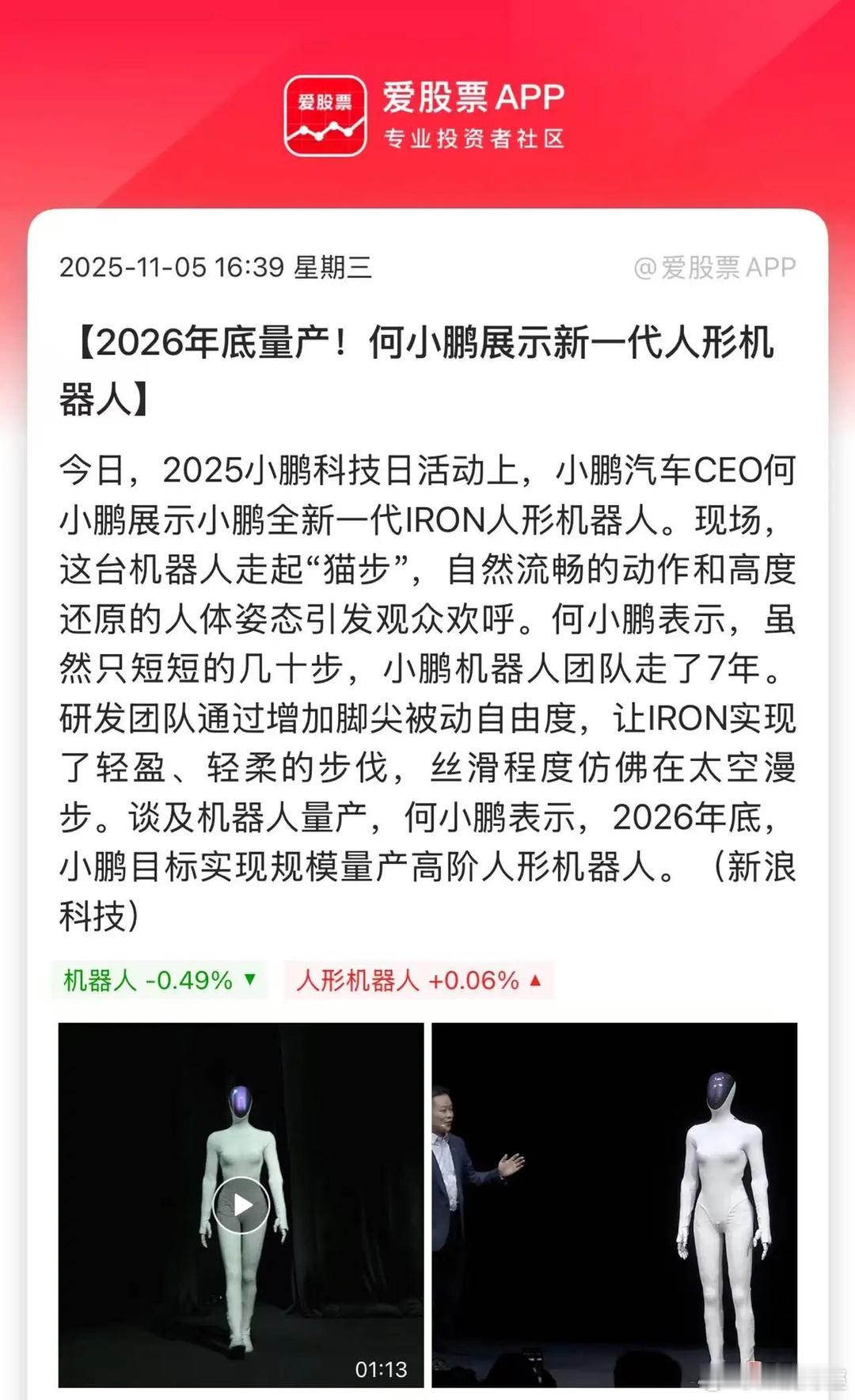今天小鹏发布全新一代IRON人形机器人,是国内首个量产高阶机器人!