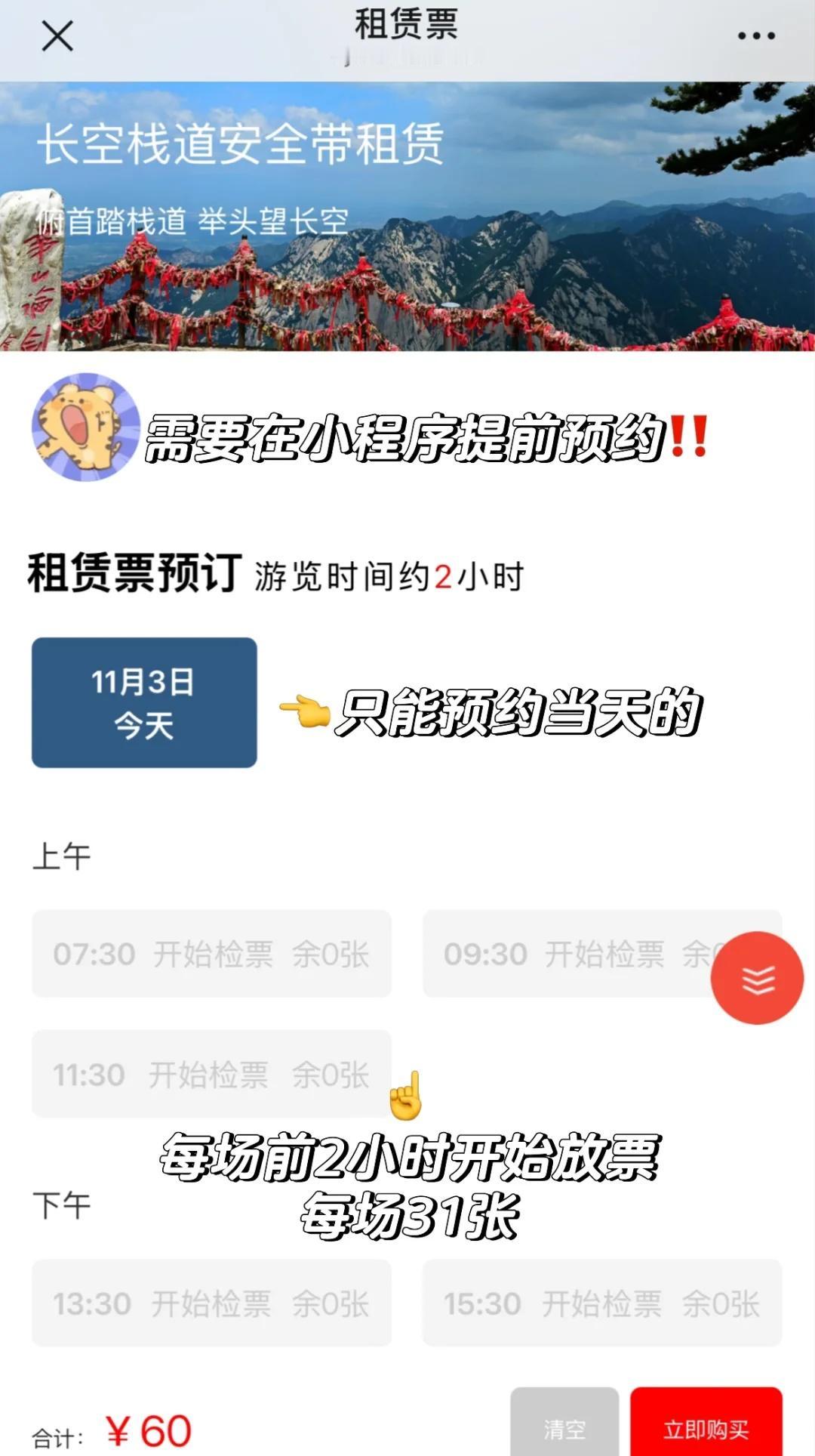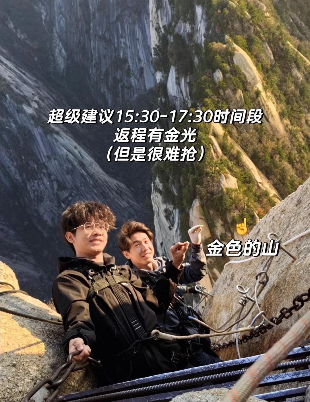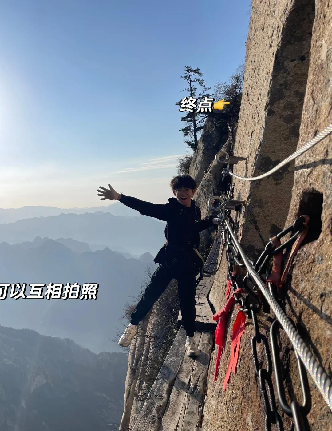 ✅11.2刚回…华山长空栈道超全时间线游玩攻略 下面给uu详细讲解一下华山最受瞩目的体验项目: 👉长空栈道👈 一定要准点预约‼️准点预约‼️准点预约‼️ 预约事项+各入口抵达时间+游玩流程+个人体验+装备 ⏰预约事项: 在wx华山公众号入口进入后如P2 预约条件很苛刻: [一]当天预约 [二]只能在主峰区才能提交预约(东南西中峰):徒步上山or北线索道上山要爬到中峰附近才能预约;西线索道上山即可预约 [三]每个时间段前2小时放票31张,剩余20张左右为线下购票所得(一定要准点抢!至少两张起买,每次购买都要输入姓名+身份证号,在P5检票是会比对身份信息不用担心黄牛[棒R]现场买票的人特别多,抢不到又想玩的一定要尽早去排队 🕒各入口抵达时间: [一]徒步直接抵达长空约5小时(不玩鹞子 [二]徒步抵达先玩鹞子后到长空约7个半小时 [三]西线索道直达约20分钟 [四]北线索道直达约2个半小时 ⛰️猪啵徒步上山亲测: 总游玩时间约1个半小时 13:30-15:24体验鹞子翻身(抢完票后再玩! 15:39抵达长空栈道检票口(迟到15分钟之内完全干得上,进门后经过严格安检核对信息,装备好安全绳开始沿着钢筋台阶下行如P13 16:10抵达木板(途中有官方拍照60r,也可以自行拿手机拍摄 16:18抵达栈道终点(一组约50人,等全部人抵达终点后原路返回 17:12开始上爬看日落 17:17返回出发点 👋个人体验: 徒步上山又想玩两个项目只能选择13:30鹞子+15:30长空 虽然长空最后一段时间真的很难约(做好心理准备 但是‼️‼️ 真的很值得! 在返程时候可以看到太阳日落,日照金山如P3、P14,金光打在身上真的很出片很震撼!独特经历[棒R][棒R] 装备: 手套建议带一只(戴手套弄来握紧铁链干净又不凉,另一只手在能拍照时可以用来握紧手机不会滑落 有任何问题都可以在评论区留言讨论 猪啵会一一为uu解答滴~ 接下来将会加班加点整理出徒步华山第一视角Vlog来给大家呈现出更加直观的登山攻略体验[赞] 尽情期待 徒步丈量世界 小小华山轻松拿下 登山 自古华山一条路 华山 华山攻略 华山长空栈道 长空栈道 长空栈道预约