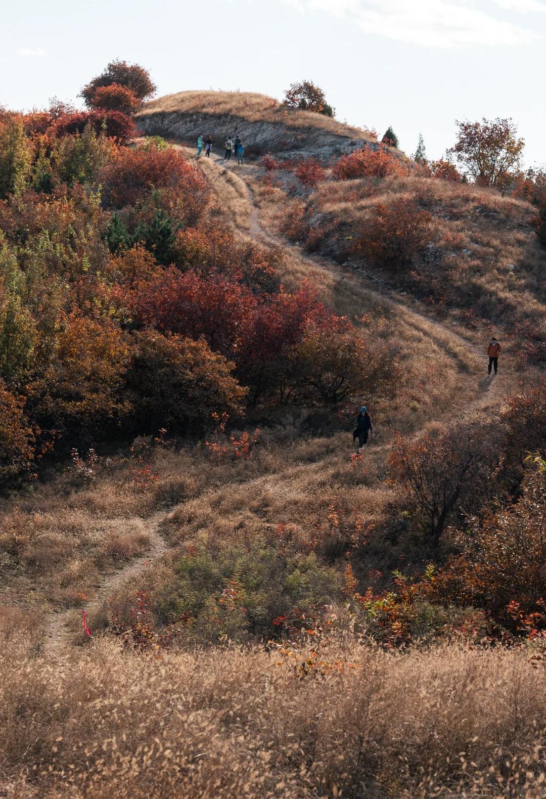 今年秋天的红叶在这里,翠屏湖三峪连穿 翠屏湖位于天津市蓟州区,三峪指红花峪、霍家峪、杨家峪。 博主走的是翠屏湖三峪连穿路线,全程约20公里,爬升将近1000米,属于中级入门路线,没有连续爬升的绝望破,但是反复爬升下降再爬升,同样让人绝望。 翠屏湖三峪连穿路线沿途景色绝佳,有红叶、密林、草垫、蓝湖,一条路线多种体验。 最近会有村民拦着不让上山,需要穿林子走野路,硬壳冲锋衣必备,否则扎到你怀疑人生。 中间会经过一段路,满天的瓢虫向你涌来,闭上嘴,拉高拉锁,带上防风墨镜和手套快速冲过去就行。 一定要带够水,想着秋天喝水量不多,博主只带了1.5升水,结果坡外有坡,最后一个坡永远是下一个坡,水没带够,走的太痛苦了。 越野跑鞋就别穿了,鞋面不防扎,别问我怎么知道的。 如果只想看红叶,建议走红花峪路线,全程约9公里,爬升约300米,适合溜达拍照,比坡峰岭、舞彩浅山的叶子要红。 秋天是适合抬头仰拍的季节 户外薯 又到登山赏红叶的好时节 坡峰岭的秋色 秋天去看彩林 翠屏湖徒步 舞彩浅山 红叶 秋天的自然景色