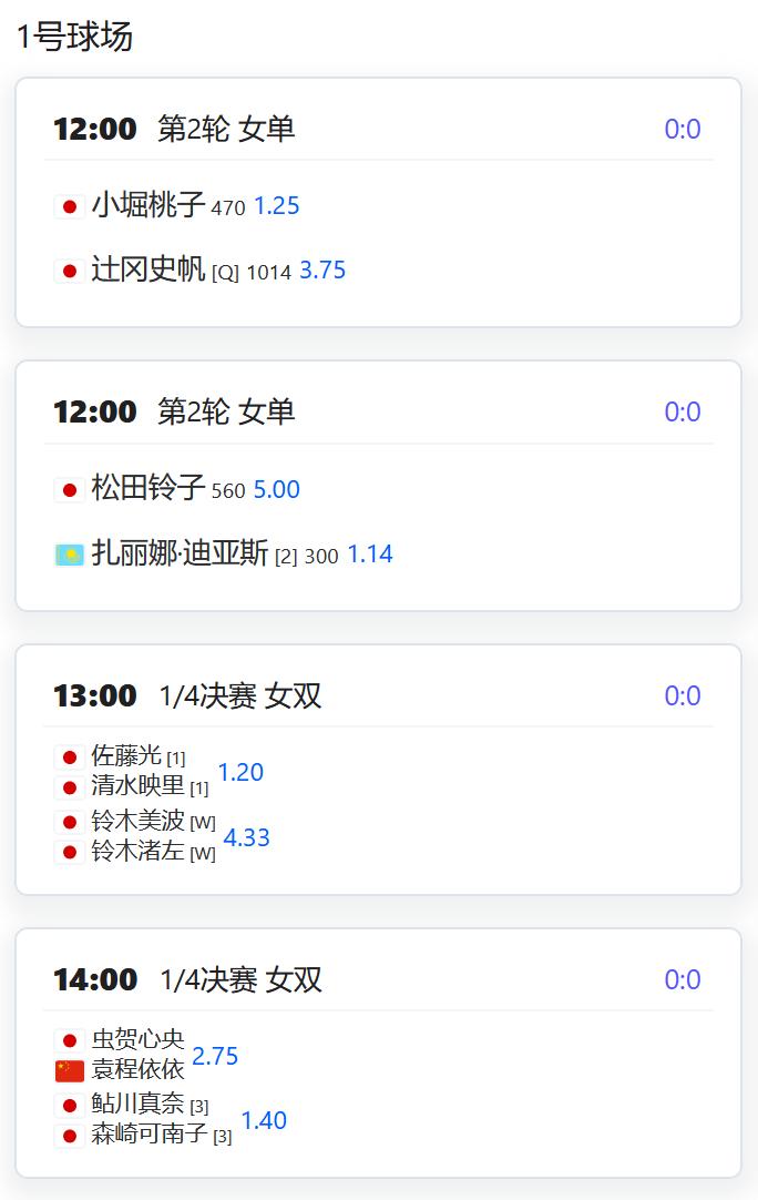 今日赛程: WTA年终总决赛,小组赛第六日: 单打,5号种子佩古拉将对阵8号种子鲍里妮,不过鲍里妮目前生病了,能否出战成疑; 随后一场,头号种子萨巴伦卡将对阵3号种子高芙,卫冕冠军高芙如果想要出线,必须击败萨巴伦卡,且最好比分是2-0; 双打,卫冕冠军3号种子达布罗斯基/卢特丽芙将与7号种子巴博斯/斯特凡尼争夺一个出线名额; 2号种子西尼亚科娃/汤森德将对阵5号种子安德烈耶娃/施耐德; W35滨松,女双四分之一决赛,袁程依依/虫贺心央将对阵3号种子鲇川真奈/森崎可南子。