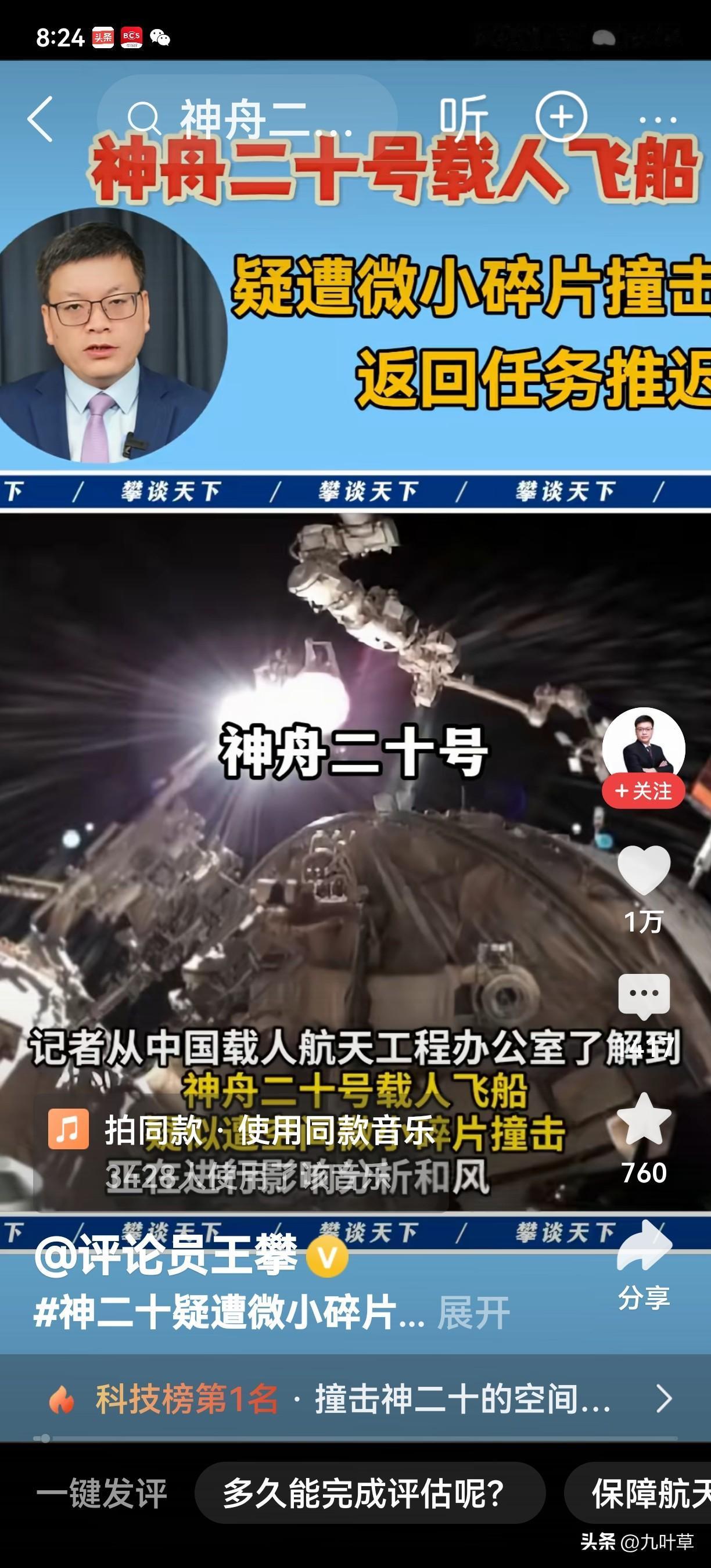 特别消息! 惊闻“神舟二十号”被微小碎片撞击,本应该在11月5日返回地面的“神舟二十号”现确定推迟,具体返回时间还未确定,需地面进行评估才能确定新的返回时间。 目前所有人最担心的是在“神舟二十号”上的航天员的安全问题,会不会像美国一样航天员被迫滞留空间站。不会,这个问题中国航天工程已经有了成熟且可靠的预案。 目前主要是对微小碎片撞击后的情况进行评估,返回也只是推迟,“神舟二十号”和三位航天员的安全绝对不会有问题! 请为我们航天员祝福! 请耐心等待我们航天员归来! 中国神舟二十号 中国神舟19号 神州二十一号 神舟二十 神舟十九号 神舟20号 神舟二十號