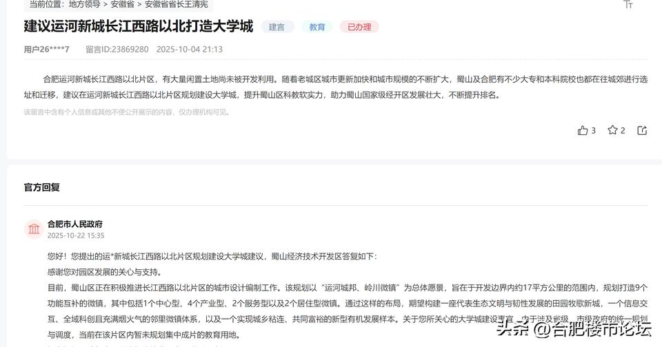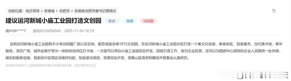 合肥小庙那,运河新城,当年的确是火爆,那边的新房也摇号。但是目前发展有些慢,住在那边的人,就各种建言献策了。 有建议要在小庙那打造大学城,有建议打造科创产业园,打造合肥科创蜀山创业基地,有建议打造文创园。 其实现在合肥发展成这样,大规模造城已经结束了,哪些地方是中心地带,哪些地方不是,现在一般人都知道。小庙还是太远了,即使再发展,有泼天富贵来了,也难。