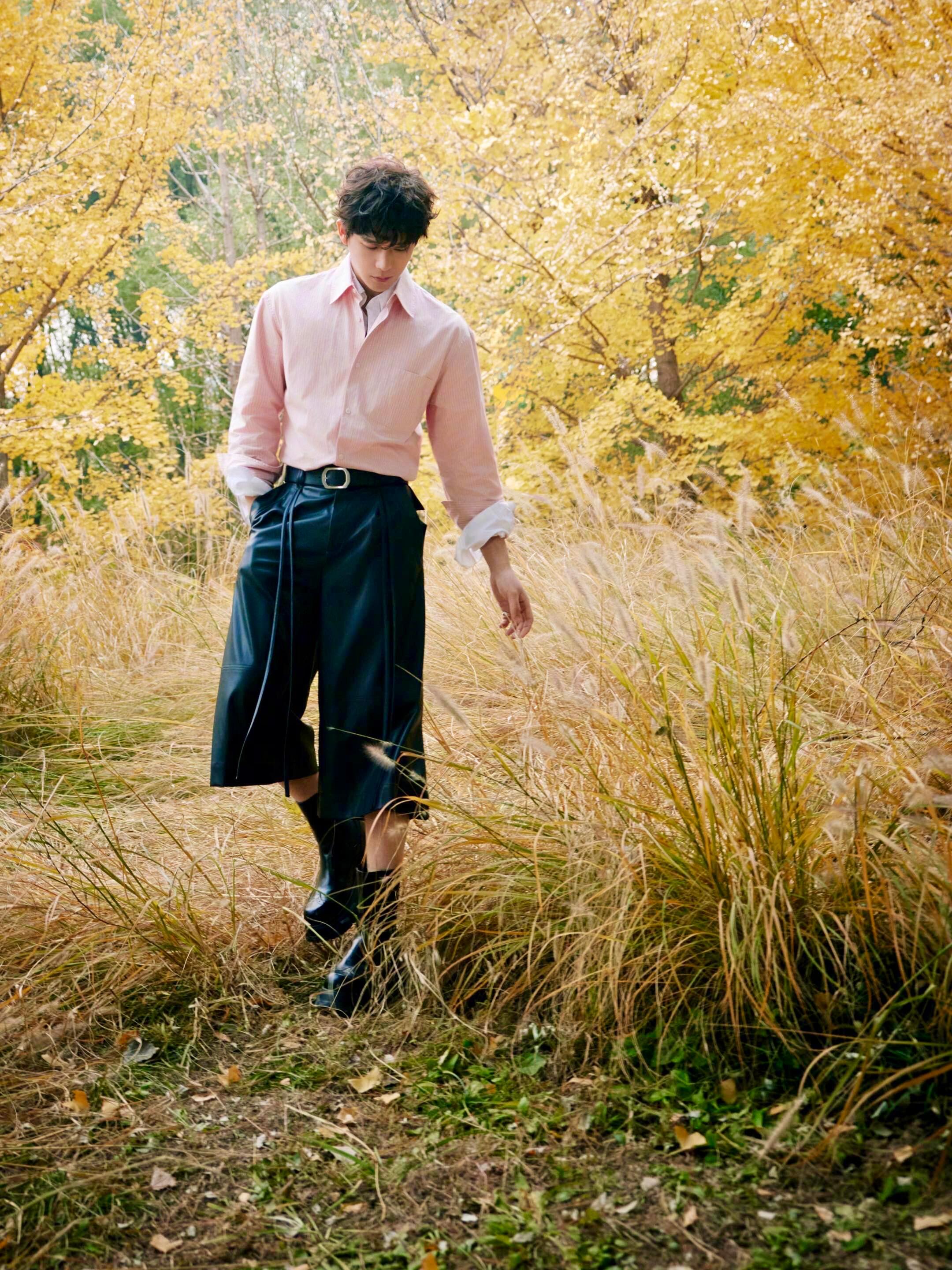 王安宇这少年感真是没谁了,这穿搭直接把“秋日元气少年”写在身上了。来自SANDRO的粉色条纹衬衫,卷袖口的设计,配黑色中裤松弛感拉满,秋日不沉闷的穿搭模版有了[哈哈]