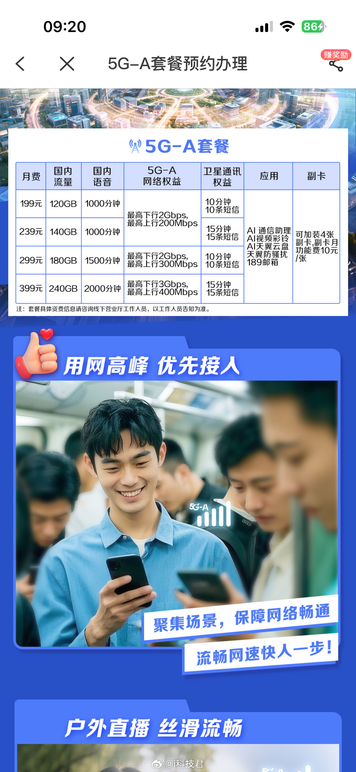 电信5G-A套餐,199元-399元每月,有没有人开通过?网速是不是比5G快的更明显?[doge]
