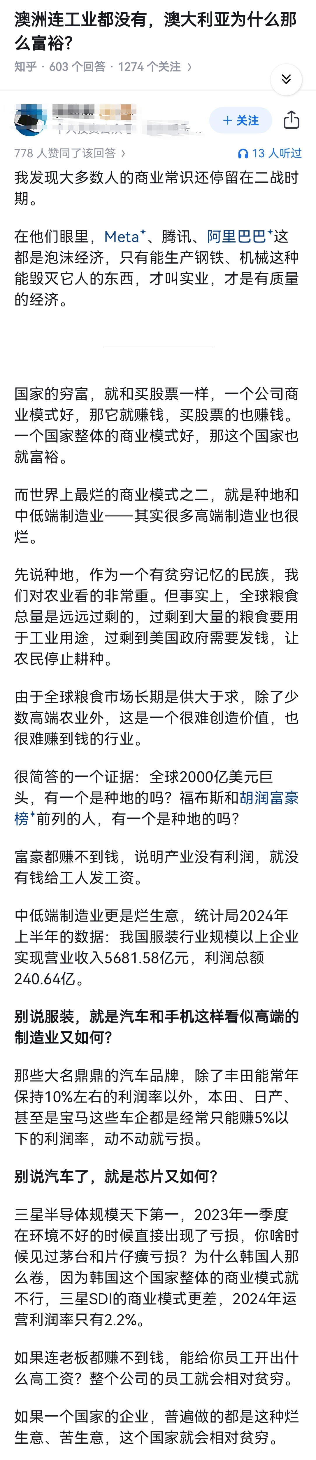 澳洲连工业都没有,澳大利亚为什么那么富裕?