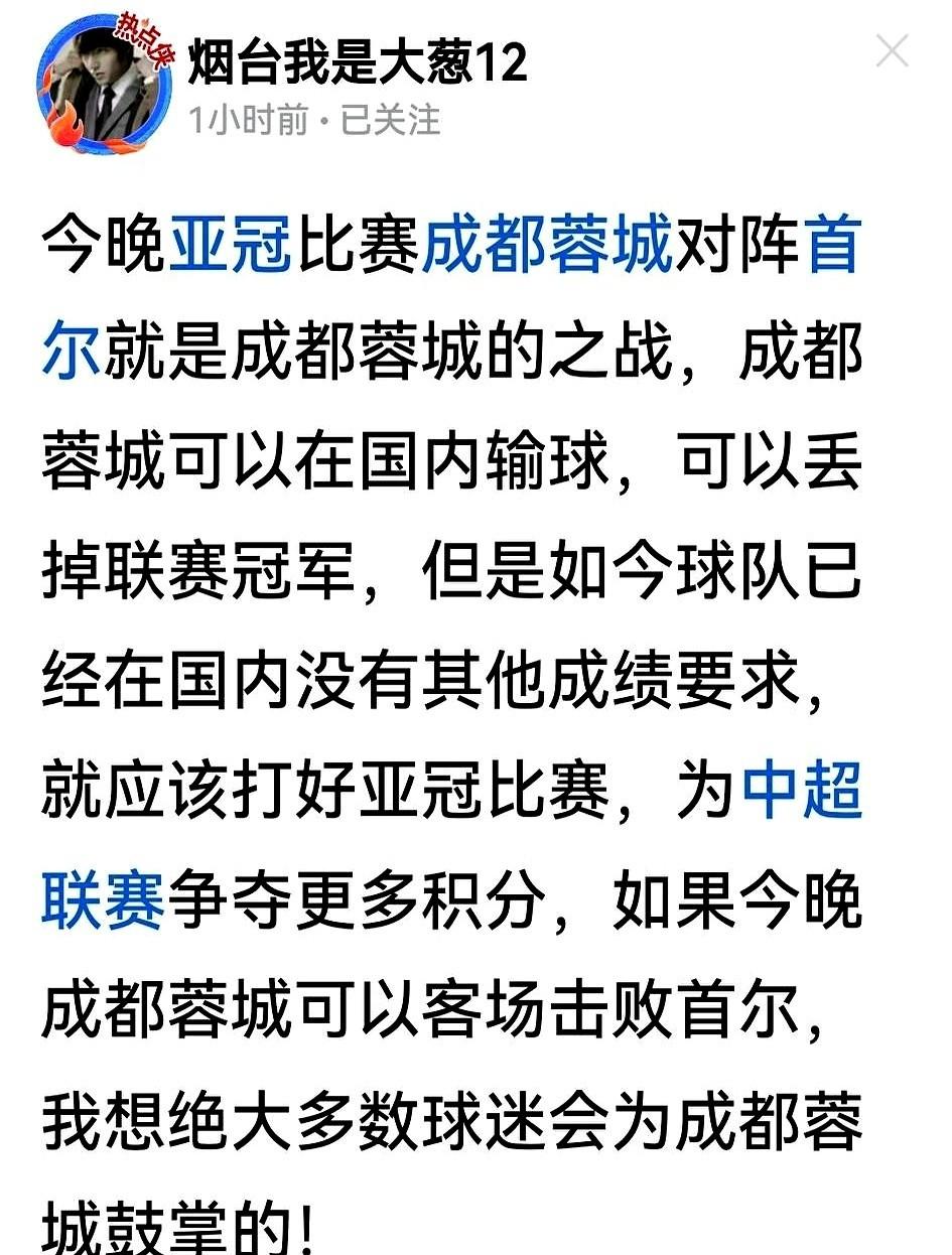成都今晚好像特别安静。 网上刷了一圈,反倒是外地的朋友比我们自己还激动,还在那儿喊着什么“背水一战”。 我们呢?好像都累了,说不出话了。 从8月份那魔鬼一样的7场比赛开始,整个队就像一根被反复拉扯的皮筋,早就没了弹性,全凭一口气吊着。真的,就是靠意志力在硬扛。 心气这东西,是会透支的。 老徐(徐正源)什么都想要,联赛要拼,杯赛要冲,亚冠更不能含糊。我懂他的雄心,但人毕竟不是机器。现在这股劲儿,感觉是真的要散了。 今晚客场打首尔,人家是亚冠老油条了。 说句扎心的话,我甚至都不在乎输赢了。 只要别崩。 别踢成一场让人笑话的“惨案”,让老徐再被架在火上烤。 能拼个平局回来,就算是烧高香了。 赢球?那是惊喜。 输球?也正常。 我只想看到,那帮小伙子们,别低着头。 把那股子已经快磨没了的劲儿,再拧出来一点点。 就一点点,行吗? 别让人觉得,我们成都的魂,真的就这么散了。