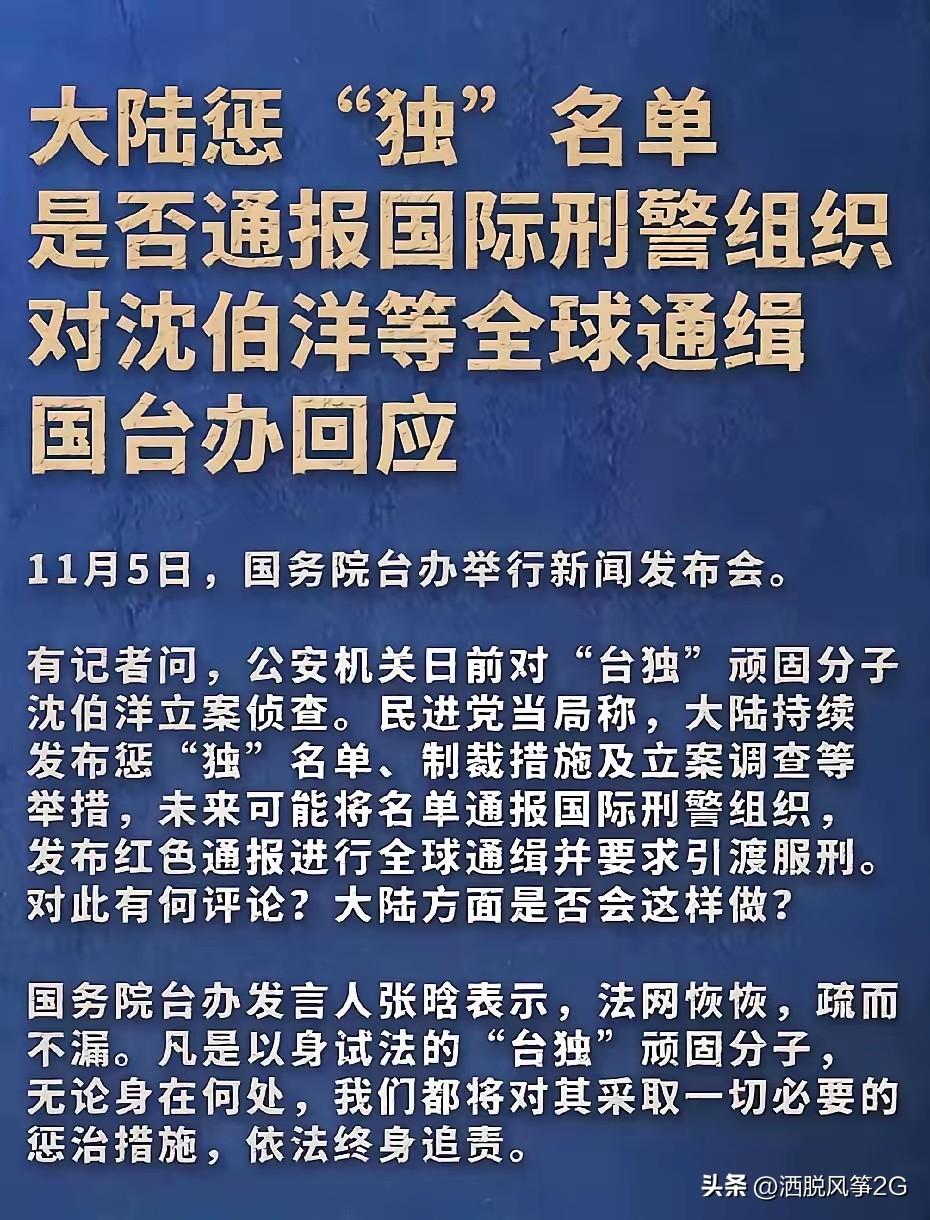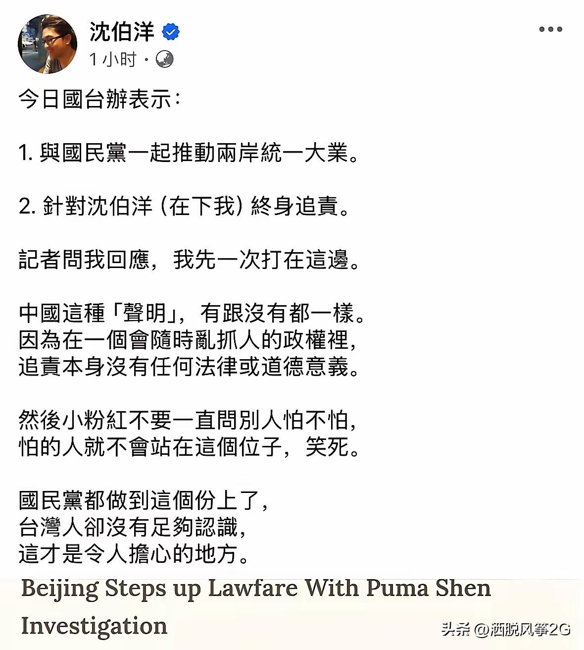 在逃罪犯沈伯洋在社媒发文:“中国对我的追责声明,有跟没有都一样,在一个乱抓人的地