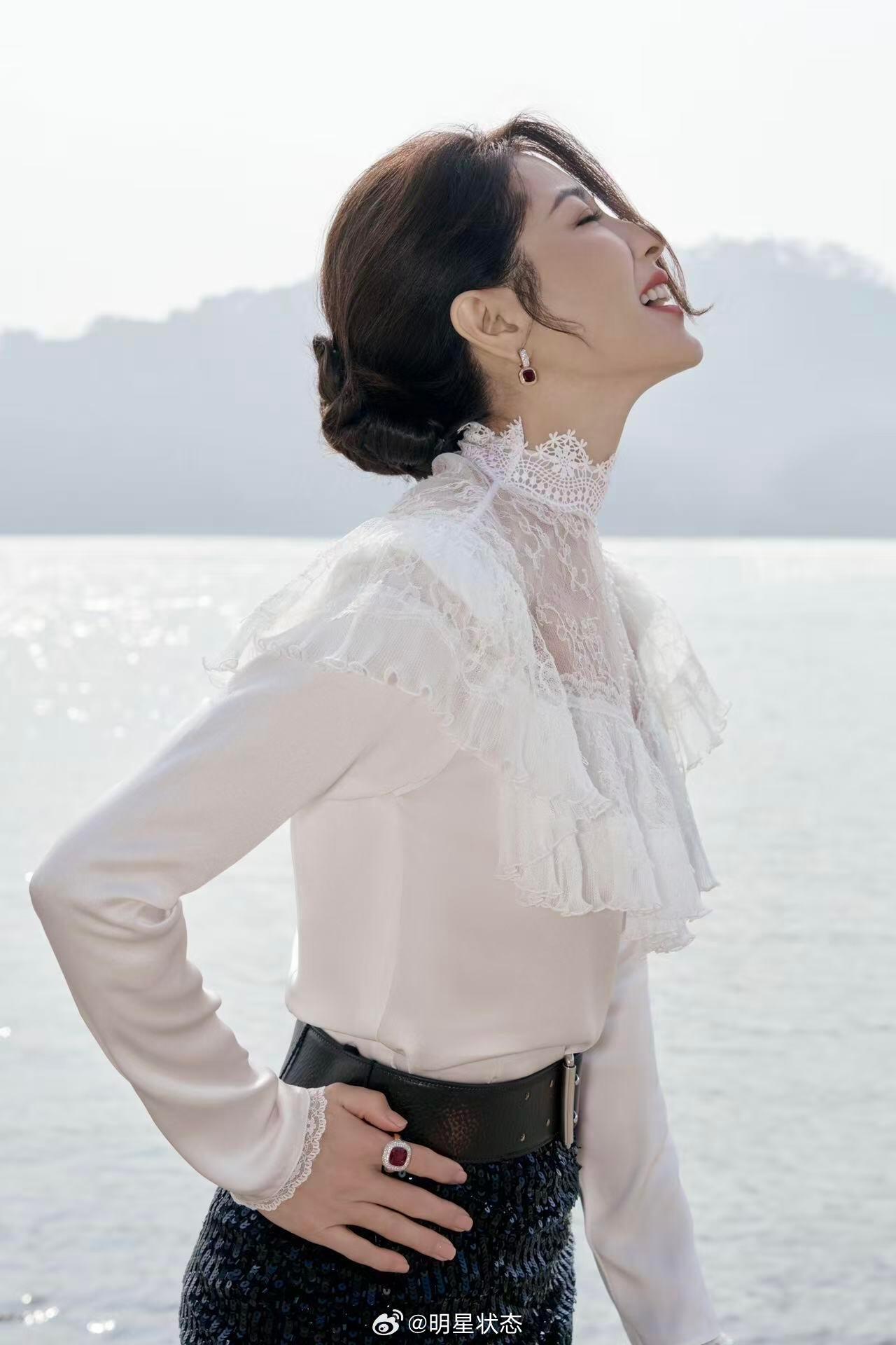 刘亦菲把死亡玫粉穿出了定制款的感觉,这种颜色普通人穿上分分钟黑三度,她居然能穿出