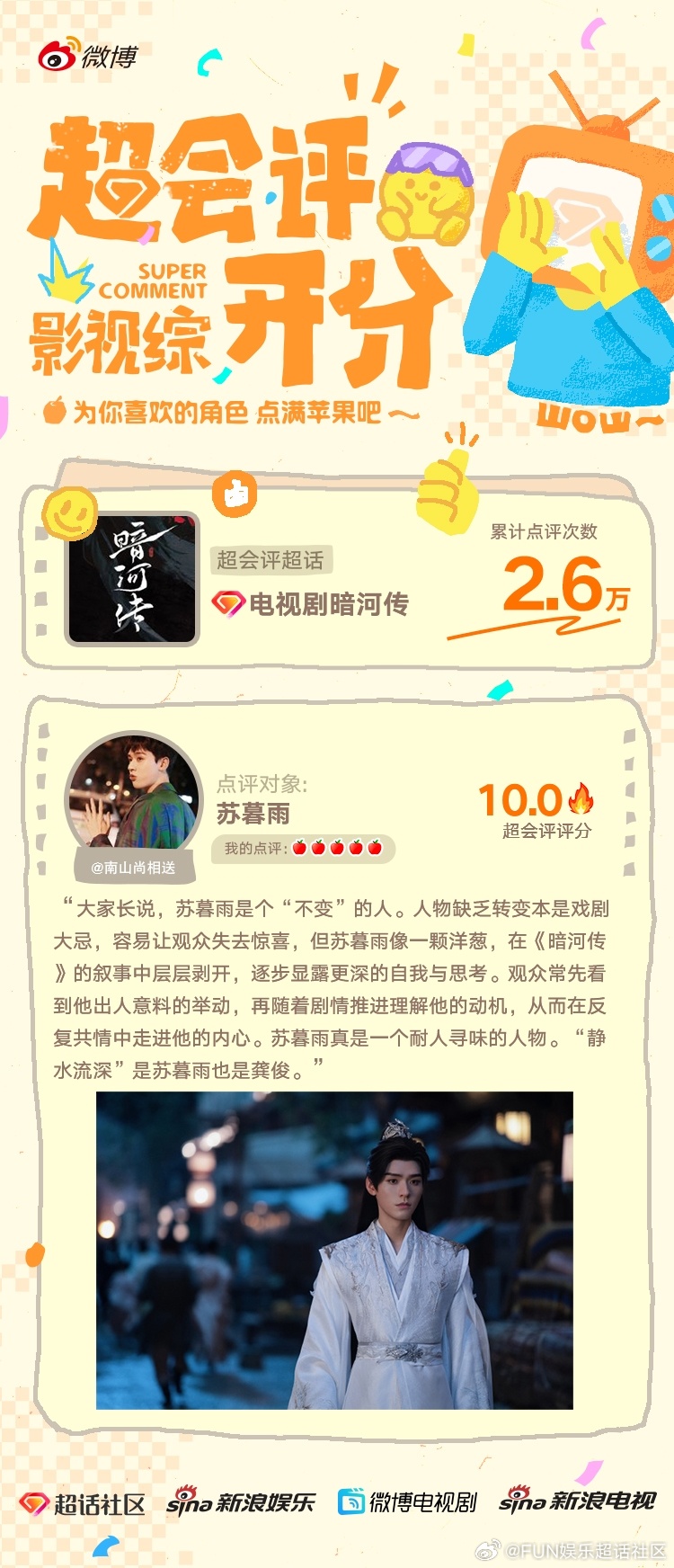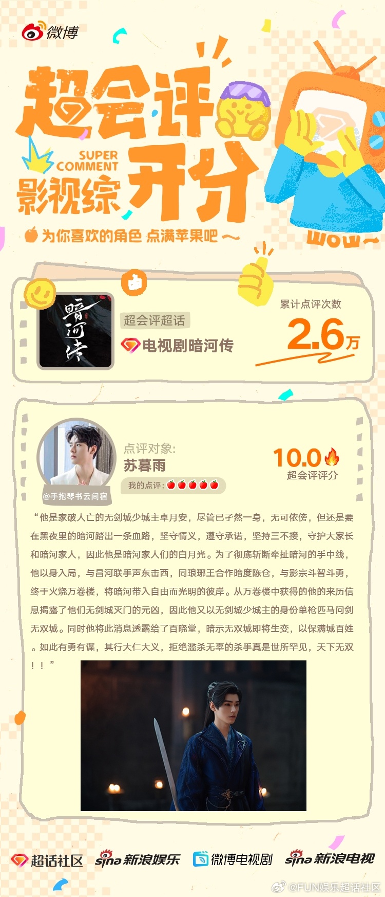 [鼓掌]更多新剧超会评即将上线,欢迎uu们输出对角色的优质点评,活动发起请关注每月月初公布的活动PR!