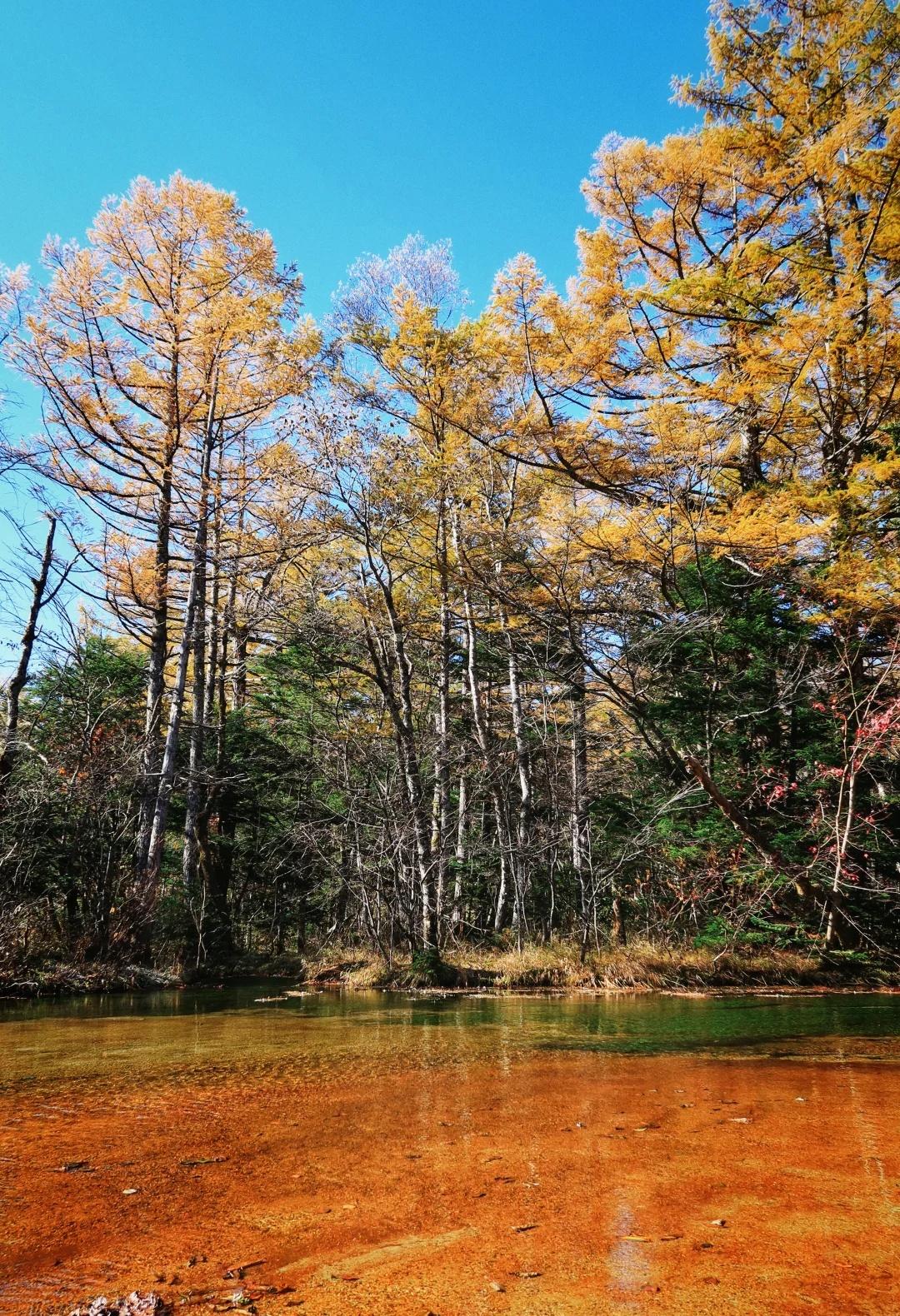 晴天的「上高地」之秋 📅 日期:10/30/2025 📍 路线:非常典型的上高地4小时徒步路线,包含拍照和吃午饭时间【参考p15时间总结】 大正池下车 > 田代池 > 穗高桥∕田代桥 > 河童桥 > 明神池 > 河童桥 > 上高地巴士总站上车 徒步总长:11.8km 🚗 交通:松本来回,电车+巴士 我是坐了7:15从松本出发的电车,8:00在「新島々」站换乘巴士。九点不到的样子就到了「大正池」开始徒步。 如果想避开人流更早去,可以提前订5:30的松本到上高地直达巴士,我提前一天看已经没票了。除了直达,其他时间必须要先做电车在「新島々」换乘巴士。巴士需要提前在网上预定(到站给他们看邮件即可),理论上也可以在新島々现场买票,但旺季还是建议提前订好。 (其实本来想预定7:10新島々的巴士,提前一天已经满了,只能晚一小时走。)最后14:05从上高地巴士总站坐车回松本,四点钟到。整体时间充裕,不赶。 🍱 午餐 上高地的商业开发非常发达,「河童桥」那里有很多餐厅和cafe,不用担心饿着。但今天确实人很多,中午的时候河童桥已经挤满了人。我就在「明神橋」那里的小木屋餐厅随便吃了一份咖喱饭(¥1400)。 🥾 徒步 整体难度非常低,几乎没有爬坡也没有分叉路,基本就是跟着其他游客一路向前走,路牌和地图标记也很方便。路上公共厕所也充足,不需要担心。 今天天气好,来自各国的游客人流密集,但并没有影响到徒步的体验,反而在熊害泛滥的当下给了大家足够的安全感,毕竟一路上都是此起彼伏的熊铃的声音。 ⛰️ 景色 上高地的魅力就在于山谷里的清澈溪流和四周的高山环抱,是一种综合的视觉和感官体验。 沿着梓川走,河水透彻见底,映着蓝天、远山和桥上的倒影,每一步都是一幅画。两岸冷杉林、落叶松随风摇曳,秋天红黄点缀,冬天积雪覆盖,水流、山峰和林木交织出一种静谧又震撼的自然感,让人忍不住慢慢走、慢慢看。 尤其是梓川的清流的颜色是我在其他地方徒步所从没见过的,淡淡的蓝色,清澈见底,倒映着杉树的黄色,真是一副五彩斑斓的秋季美景。 🌟 其他 早上到蛮冷的,中午太阳出来会暖和很多但是也要提前注意保暖。另外刚下大正池的时候遇到了一群猴子,特别有意思。【p14】 上高地 上高地徒步 河童桥 明神池 大正池