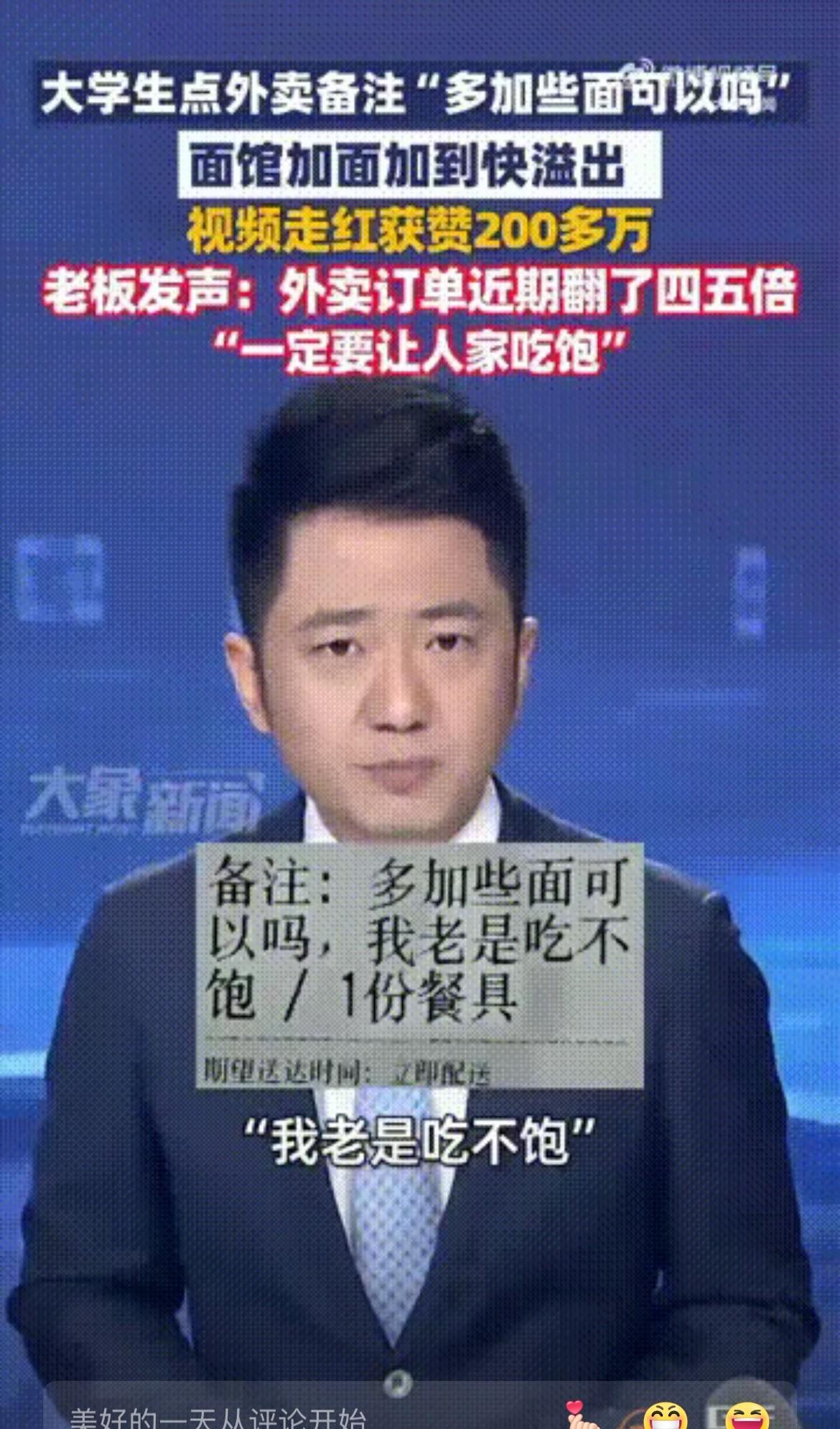 武汉学生点外卖求加量, 老板竟多给一倍面, 爆单背后藏着啥故事。 湖北武汉有个大学生生活费紧张,点最便宜的面还犹豫要不要备注多加量。 结果外卖送来后面堆得快溢出来,拍视频发网上后这家店订单涨到原来的四倍。 老板四十多岁说以前读书时穷得只能吃馒头就面汤。 看到备注立刻想到自己当年经历,多加面对他来说只是抓两把的事。 现在每天要做一百多份,还专门叮嘱亲戚帮忙时别偷工减料。 有网友认出这和以前包子铺老板多给包子的新闻一样。 有人评论说现在的商家备注要求常被忽视,这种实在人反而能靠口碑火起来。 店里没涨价,老板说让学生吃饱才重要。 吃饱饭的善意在城市里悄悄传递着,没人知道明天还会发生啥事。