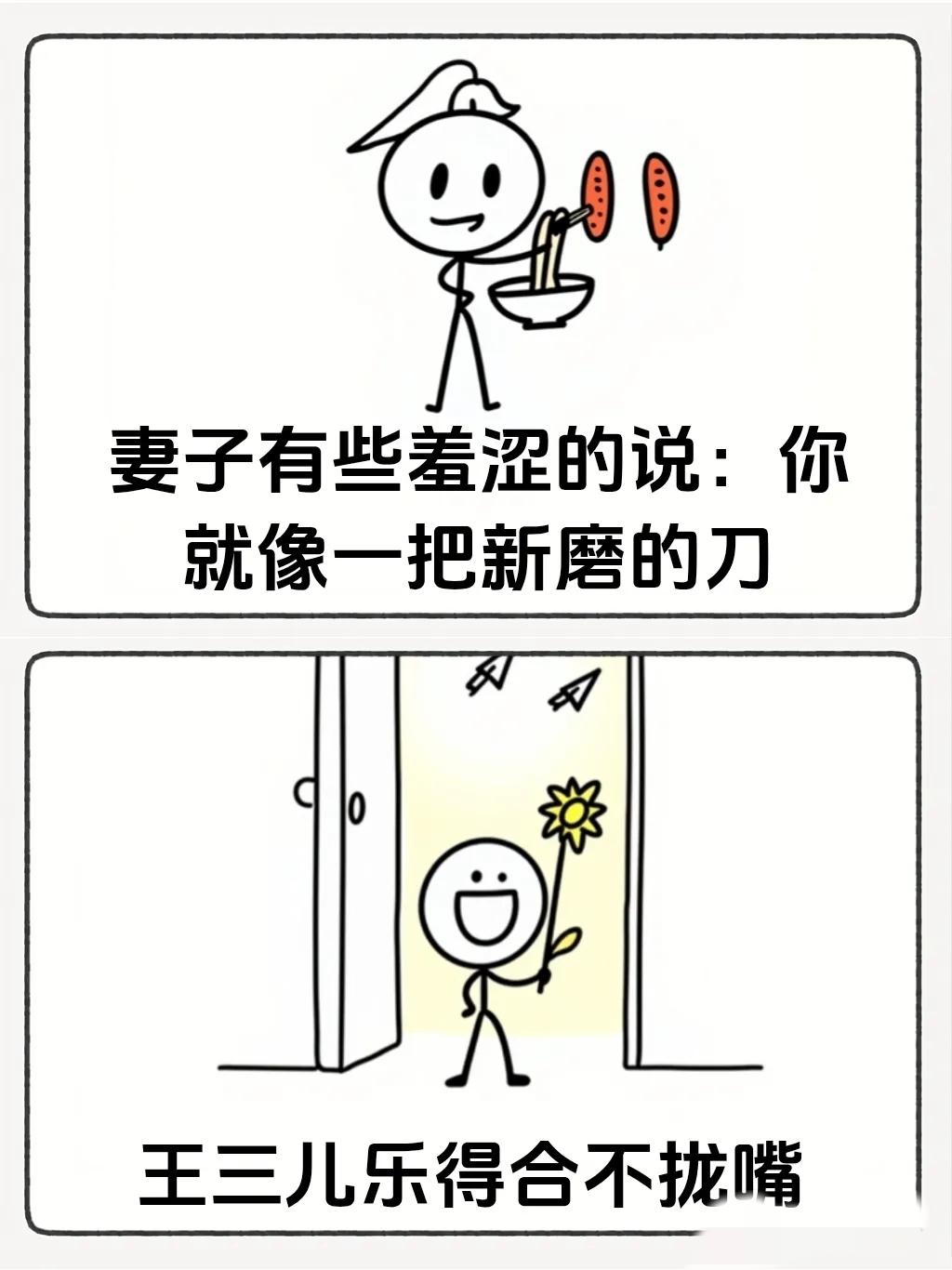 趣味漫画:“妻子说:你就像一把新磨的刀🤣两则故事,多大了还尿床,哈哈哈~”
