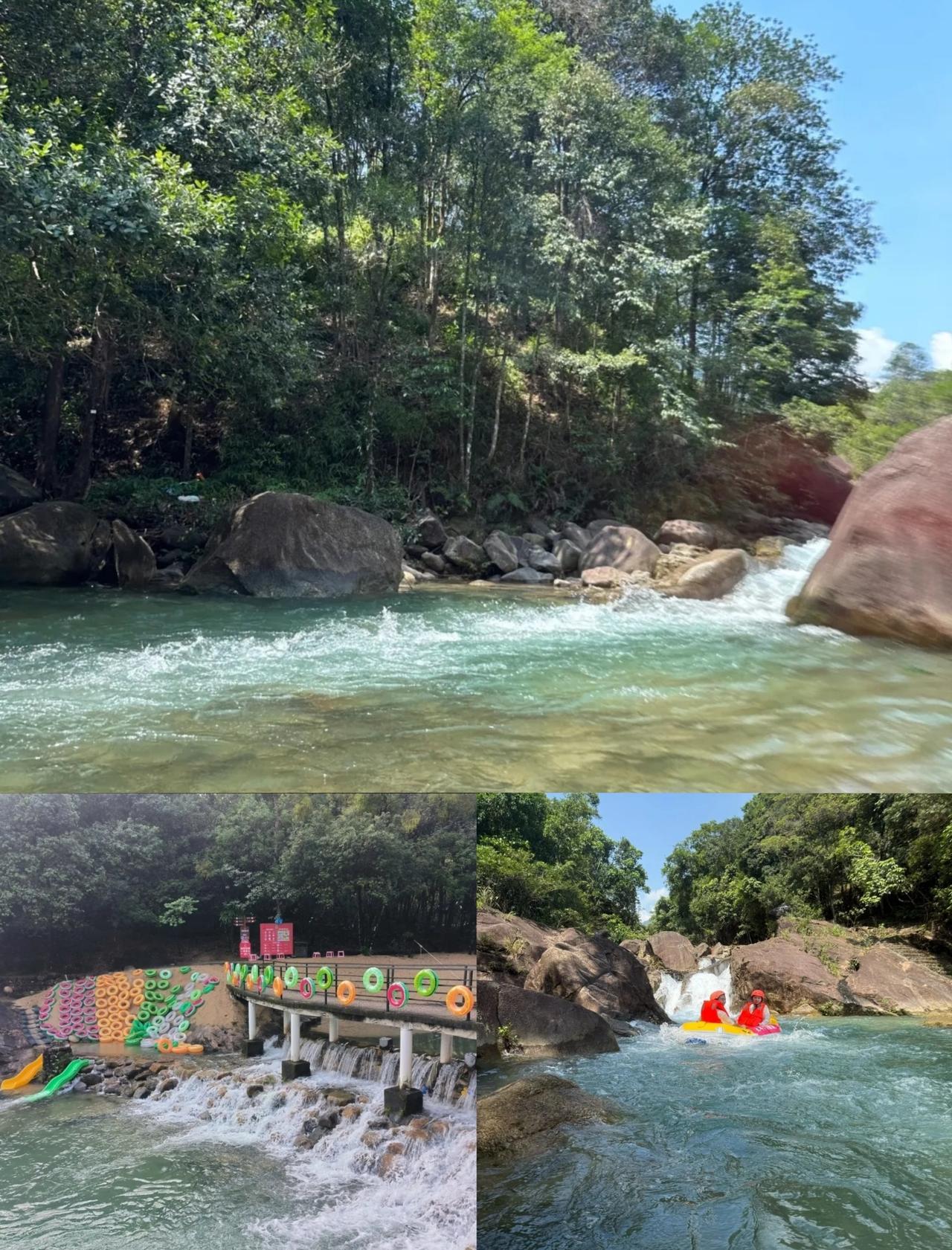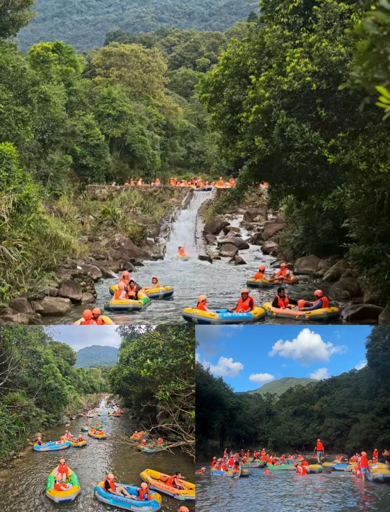 🌳两岸全是绿油油的森林,像闯进了现实版绿野仙踪!空气里都是清凉的负离子,晒黑的皮肤都被治愈了~ 🚣♀️重点夸夸安全员!全程跟着我们漂,每个急弯都提前提醒,安全感直接拉满!宝妈带娃也能放心冲~👶👩👧👦 🚗广州出发40分钟到!停车场超大,景区环境干净到像五星级度假村!最绝的是水质!广东最靓的水名不虚传,清澈到能看见水底的小鱼🐟! 刺激度拉满!全程有N个落差点,最陡的那个直接让我体验了3秒失重感!但别怕,救生衣+头盔+安全员三重保护,胆小星人也能闭眼冲! 📍地址:广东省广州市增城区派潭镇高滩村仙泉西路3号 🚗交通:自驾导航「大丰门漂流」,广州出发1h内直达! 💡Tips: 1️⃣带防水手机套!不然拍不了美照 2️⃣穿凉鞋!别穿拖鞋会被冲走 3️⃣多带一套换洗衣物+毛巾 4️⃣建议下午3点后漂,没那么晒